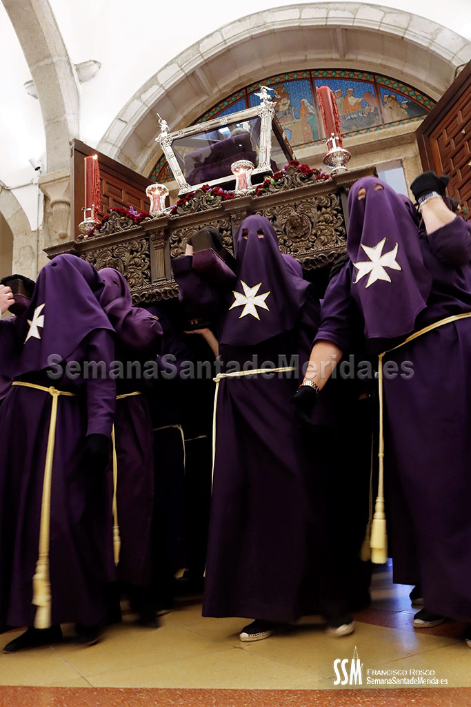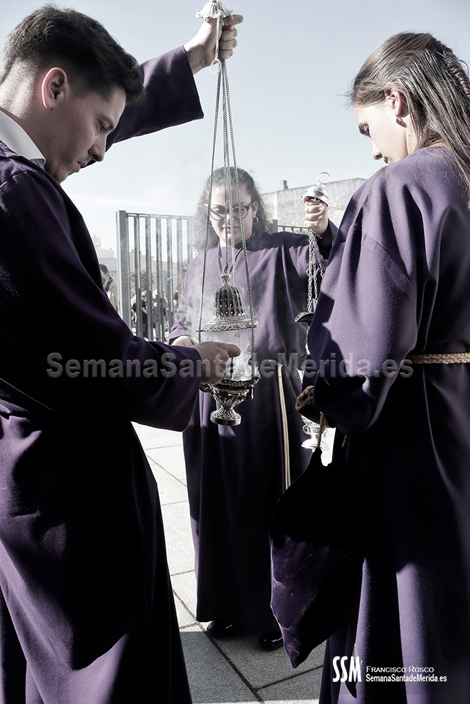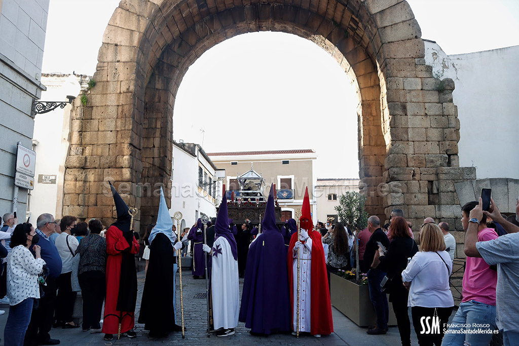 Cada cosa en su sitio y Cristo en el centro de la tradición más arraigada de la Semana Santa de Mérida en la que El Barrio se convierte en túmulo y capilla, cobijo y consuelo de la Amargura de la Pasión y Muerte de Cristo.