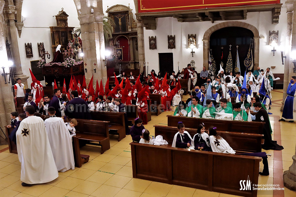 La Calle Calvario se tiñó de todos los colores habidos en la paleta del mejor pintor. Esos colores que aportan las hermandades de Mérida que, como marca la tradición (y la obligación), acuden al entierro de Cristo.