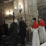 El coro de la Basílica impuso la solemnidad en una celebración en la que los ojos se dirigían a Eulalia que, ataviada de Rojo y blanco, sus colores martiriales, estaba escoltada por artilleros con uniforme de época.