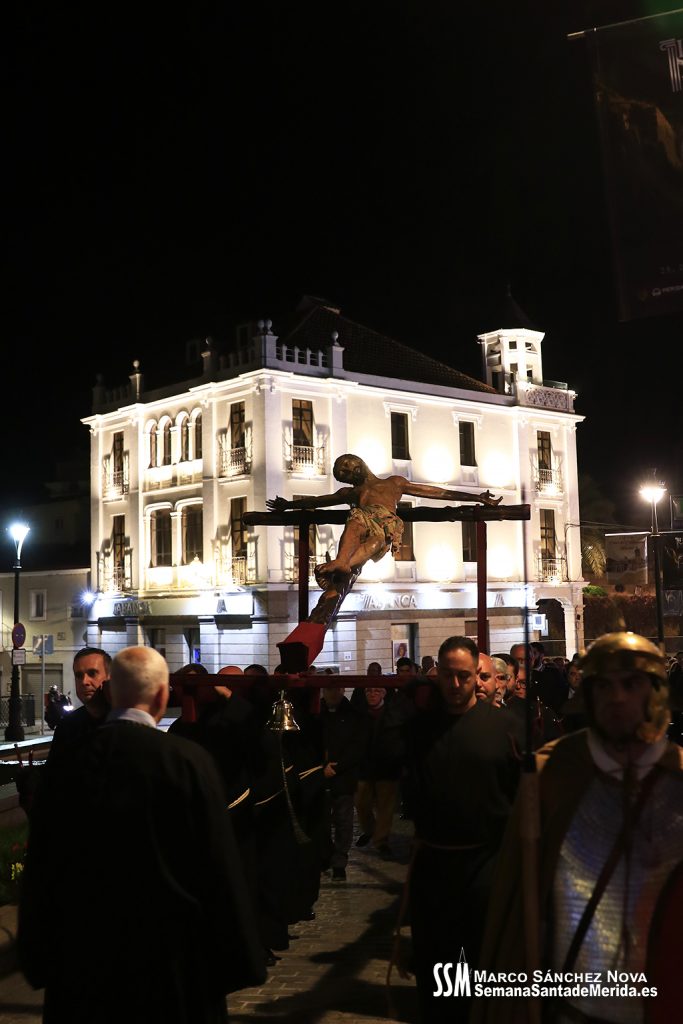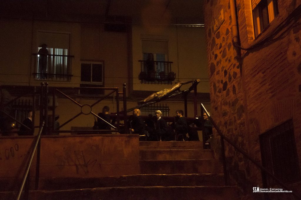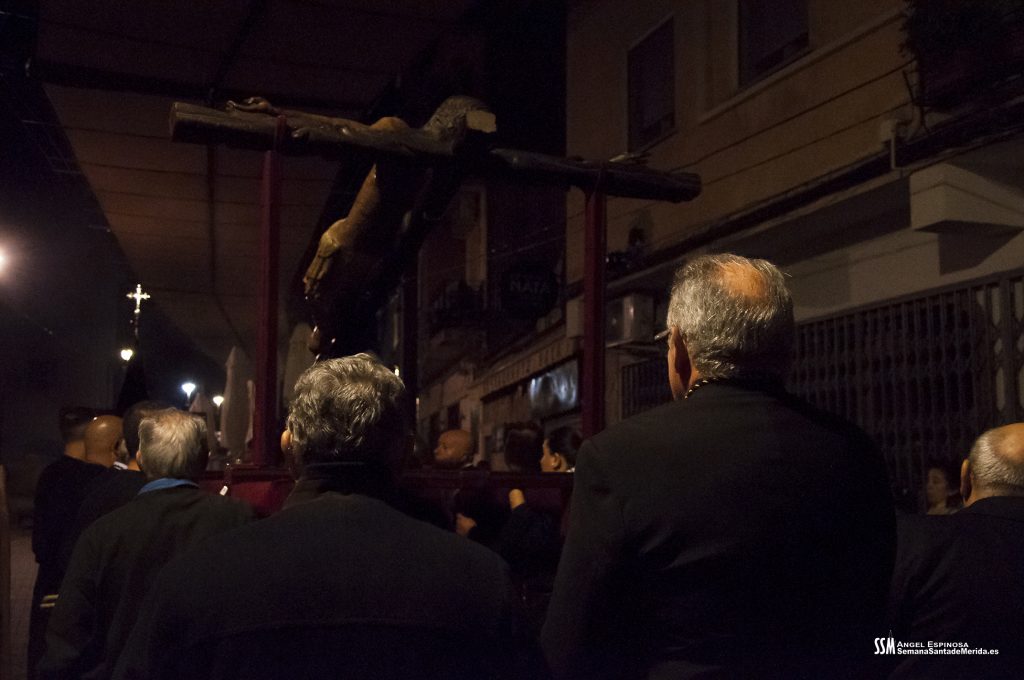 Con la entrada del Cristo, al revirar hacia la izquierda, comenzaban las diferencias con el Viernes Santo. Estana todo perfectamente medido para que, al finalizar las oraciones a los 14 Cristos de cada una de las Ciudades Patrimonio, la entrada de Santa Eulalia fuera perfecta, y buscará ubicarse frente al Cristo, en el recinto.