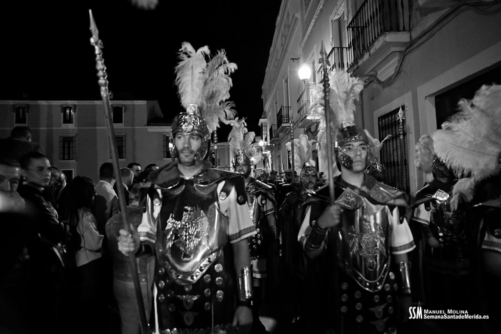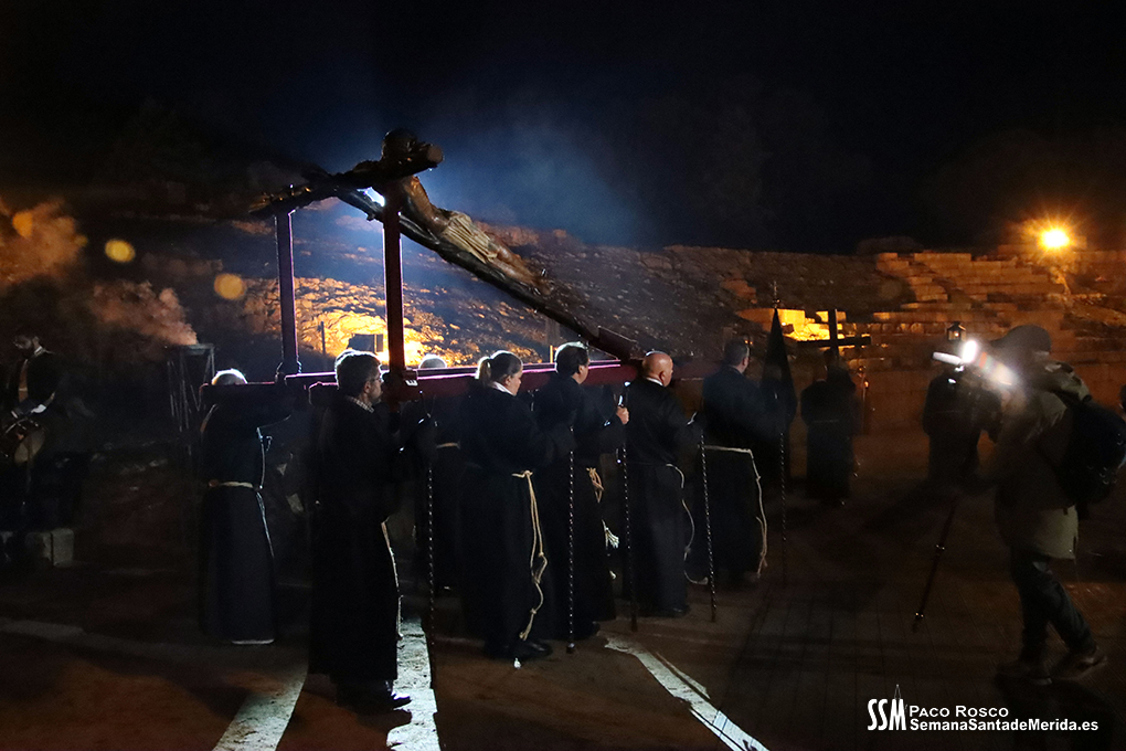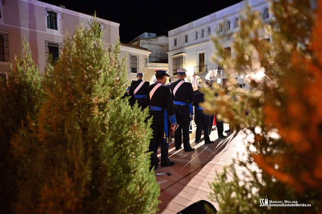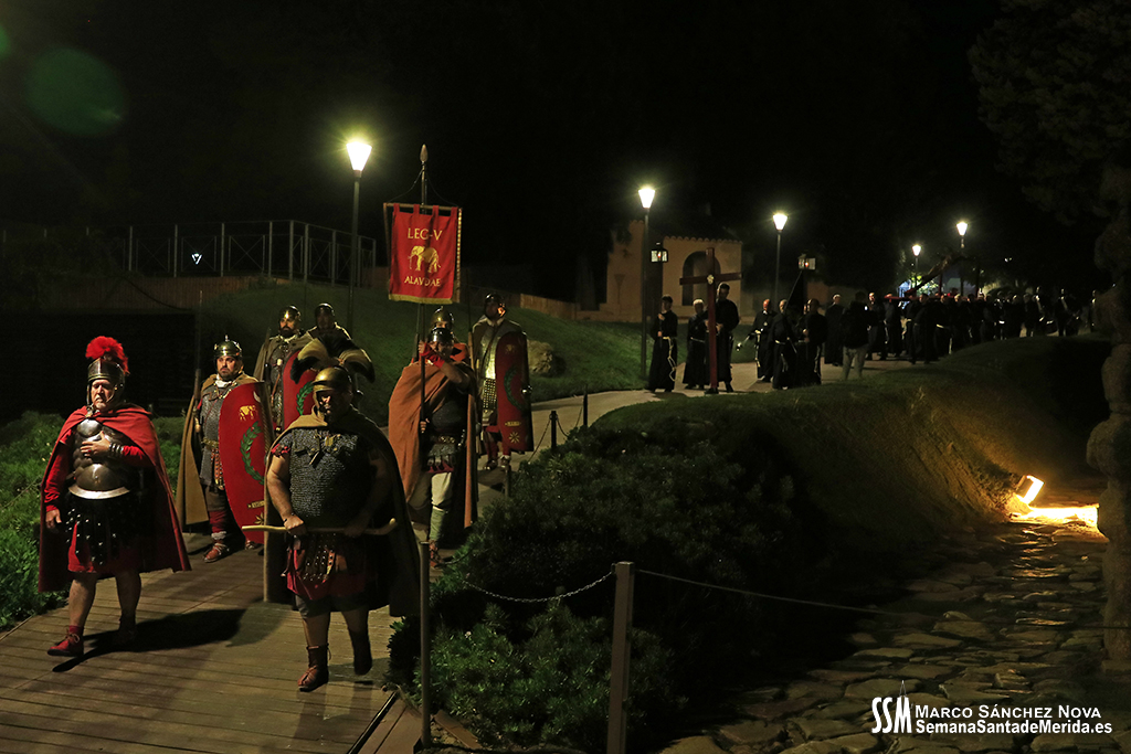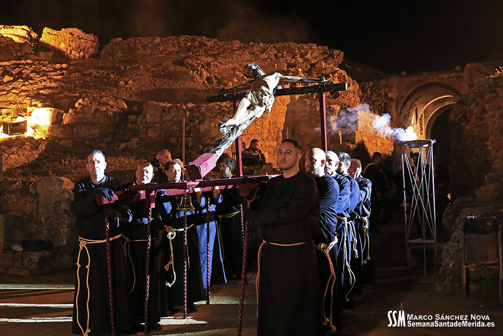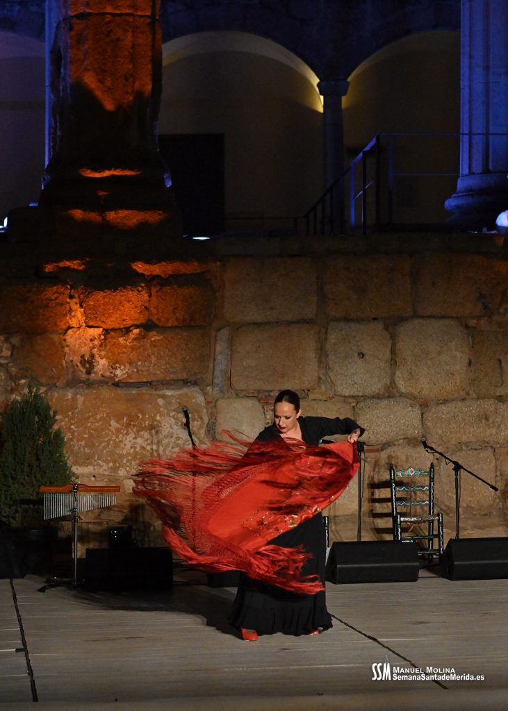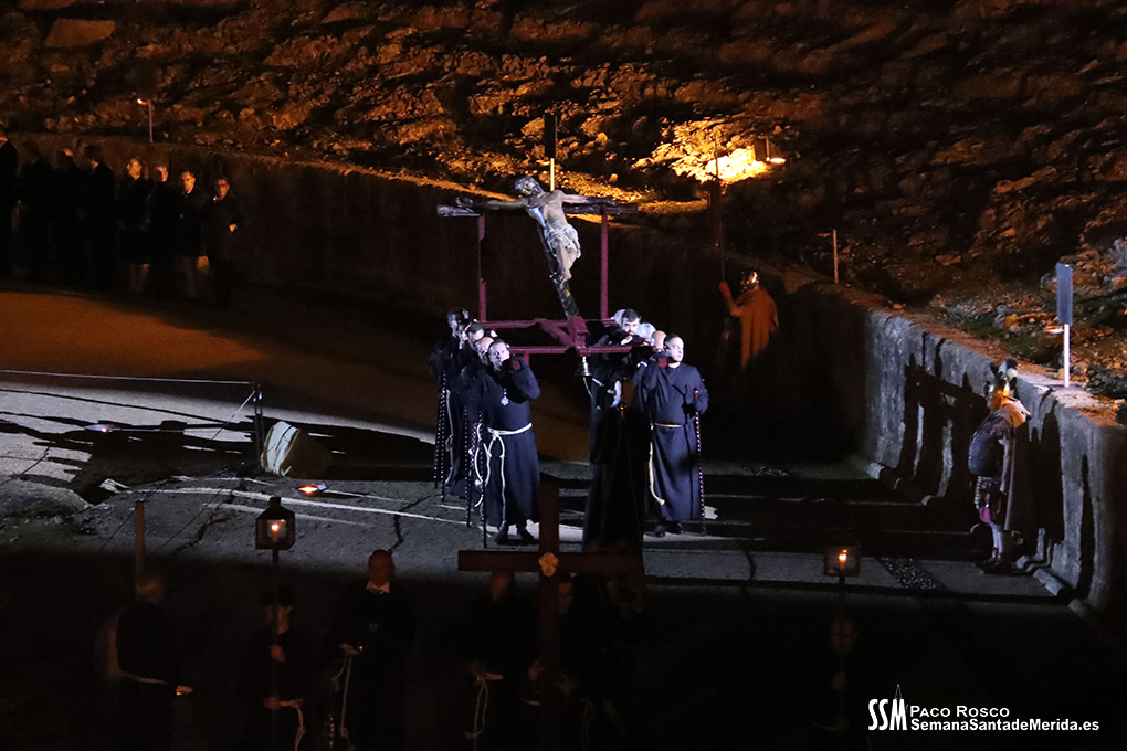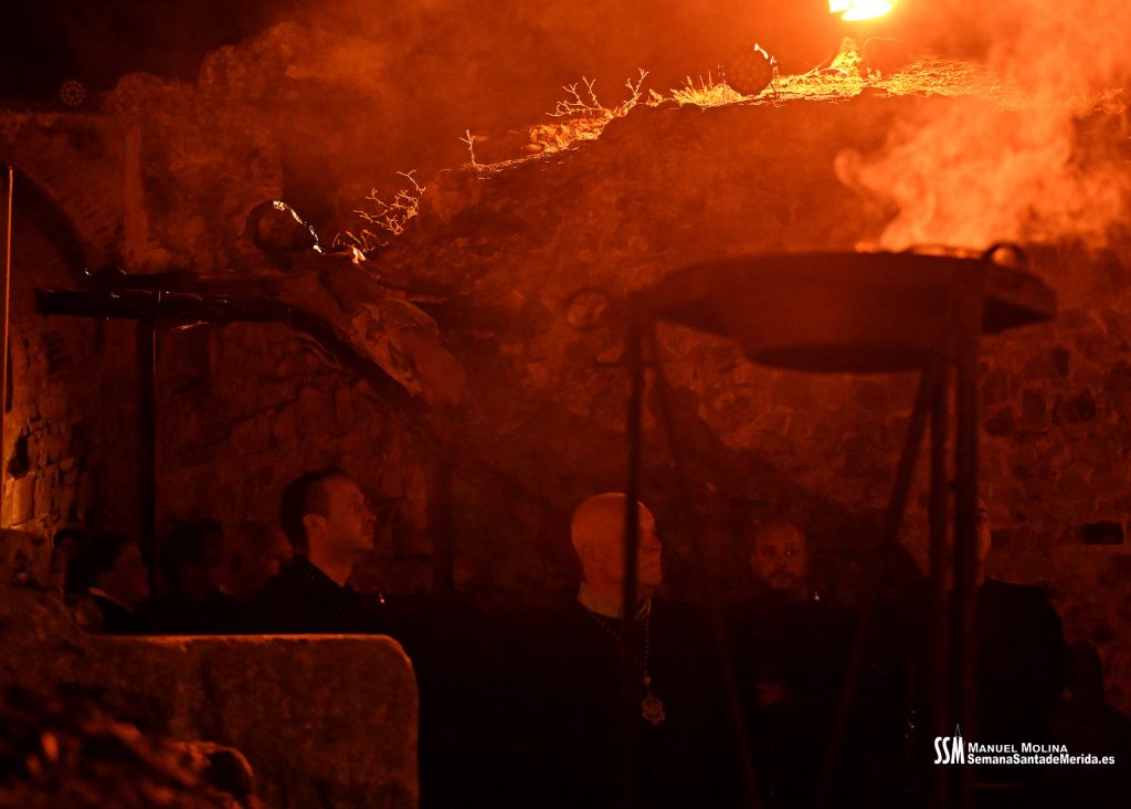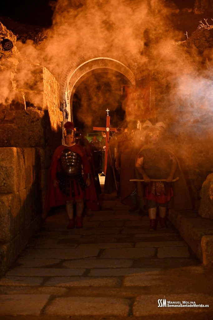 Parecía Viernes Santo, pero no lo era. La disposición de todos los elementos en el recinto era la misma, pero no era Viernes Santo. Sonaban tambores roncos, de la OJE de Mérida, y no era Viernes Santo. Era sábado y, a lo lejos, en esa hora de la noche, comenzaban a sonar las campanas anunciando que Santa Eulalia comenzaba su camino hacia el recinto monumental.