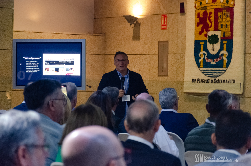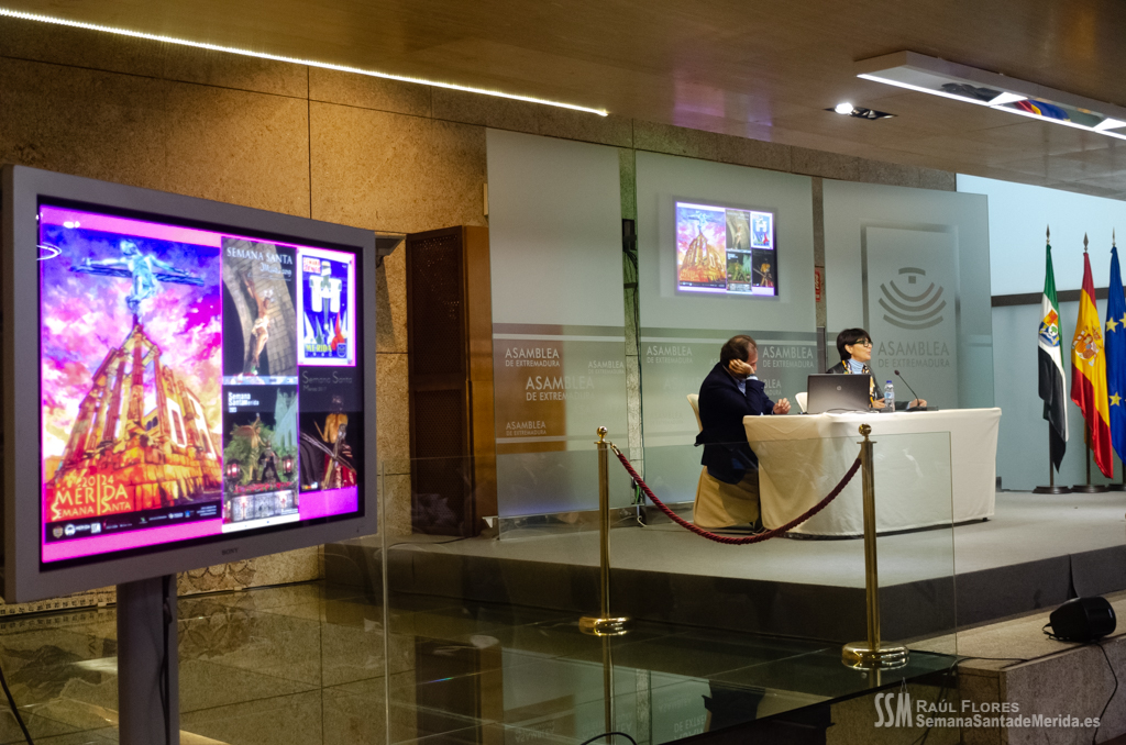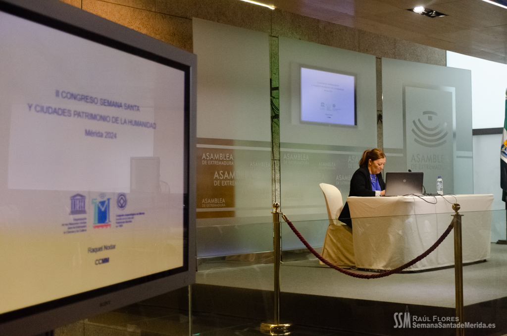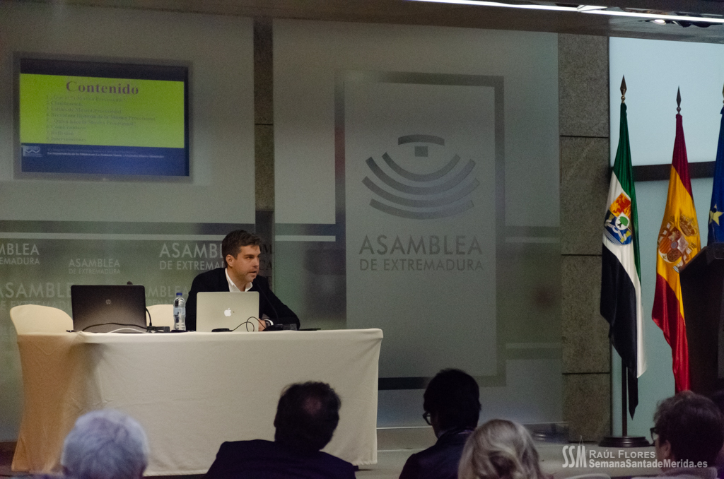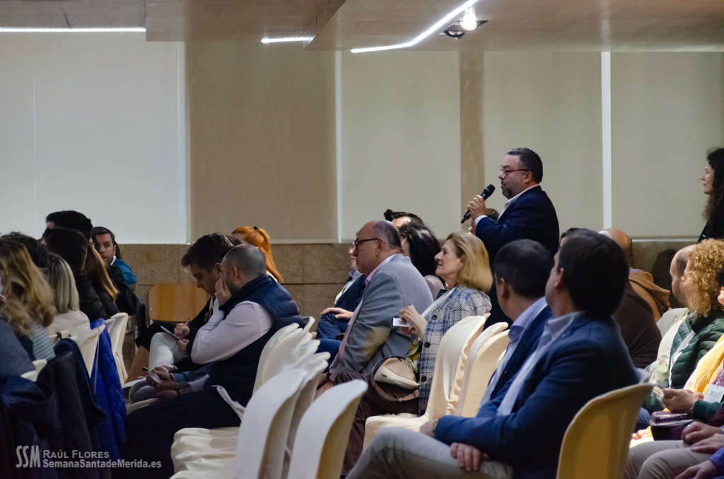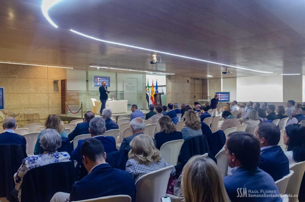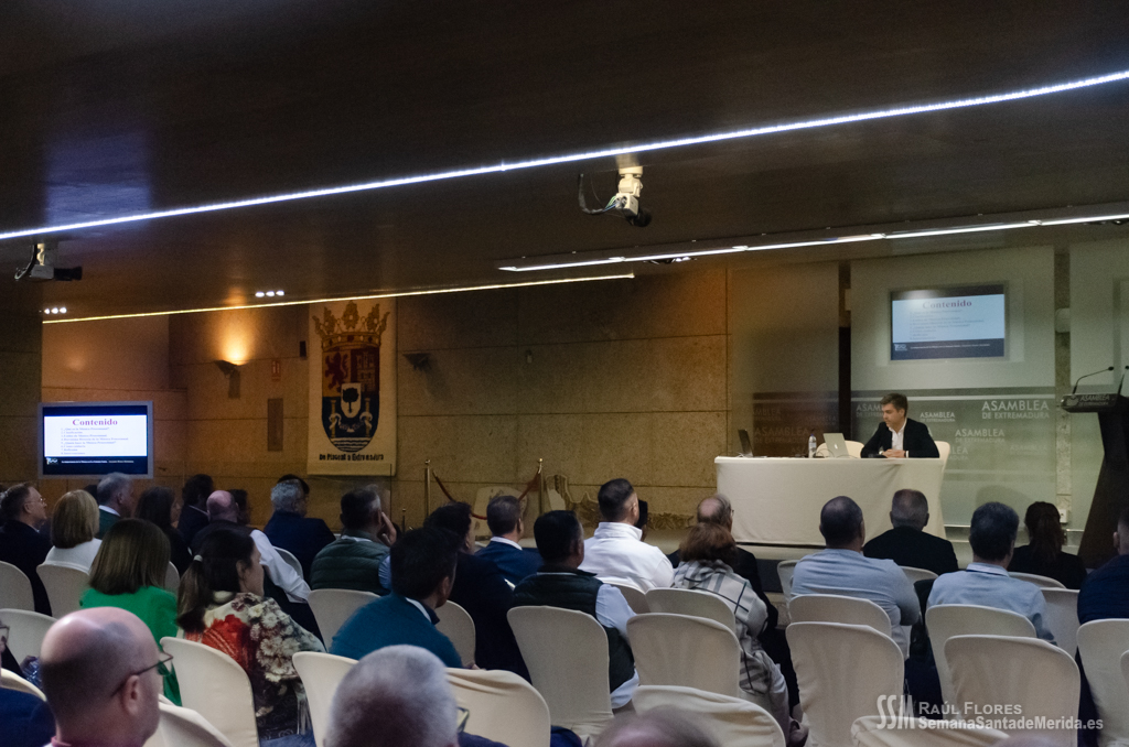 El Salón de los Pasos Perdidos de la Asamblea de Extremadura, se convirtió en el salón de la Casa Hermandad para el desarrollo de ponencias y debates en los que se habló de la importancia y la necesidad del apoyo de la administración pública a las hermandades y cofradías de la mano de la delegada de Semana Santa de Mérida, Ana Aragoneses.