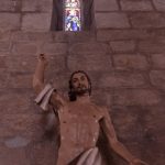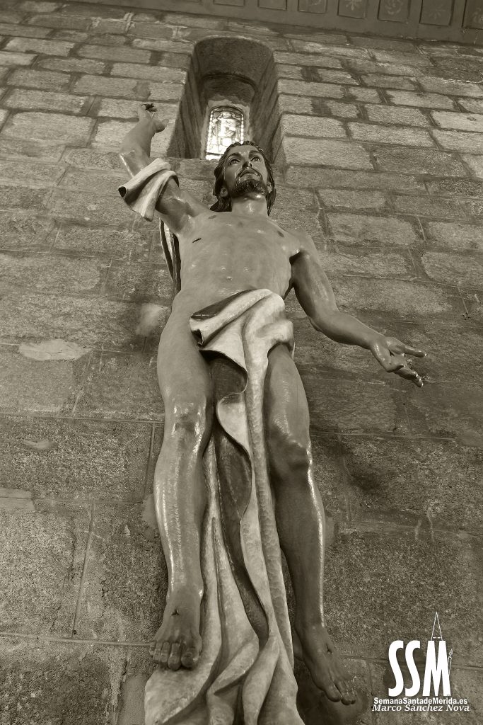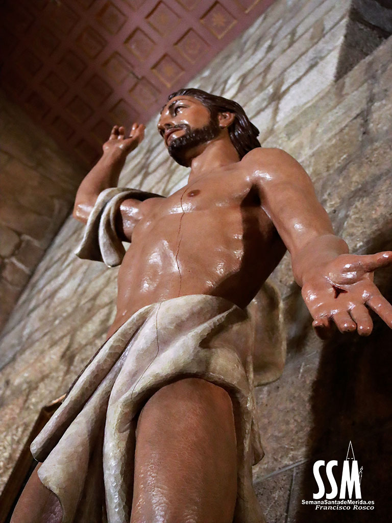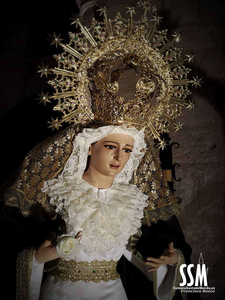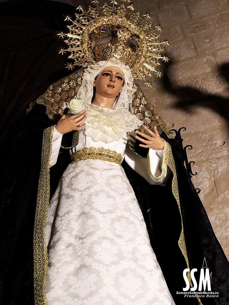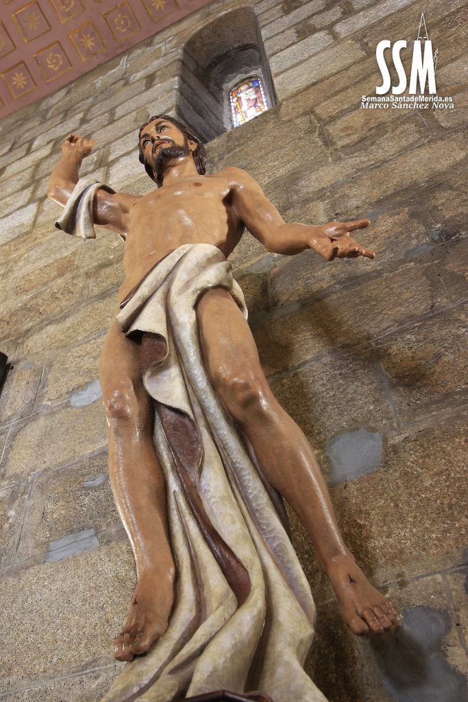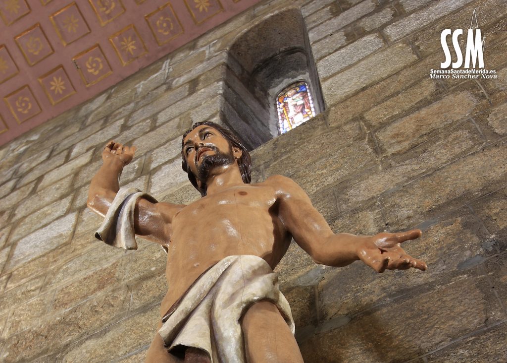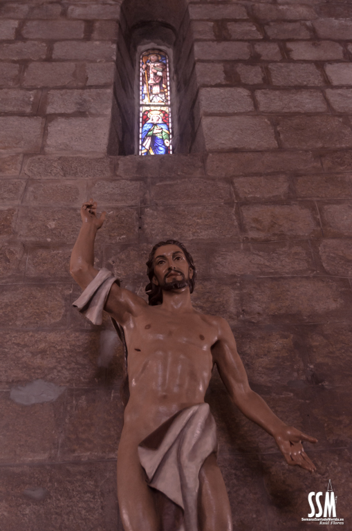 Y la certeza la encontrábamos en Santa Eulalia donde, nuevamente, San Juan ha anunciado la buena nueva y la Virgen del Mayor Dolor se ha encontrado con Jesús Resucitado. Una bellísima estampa que, junto al Altar Mayor, nos encontrábamos nada más entrar en la Basílica. Los colores rojo, verde y morado daban paso al blanco de la Resurrección.