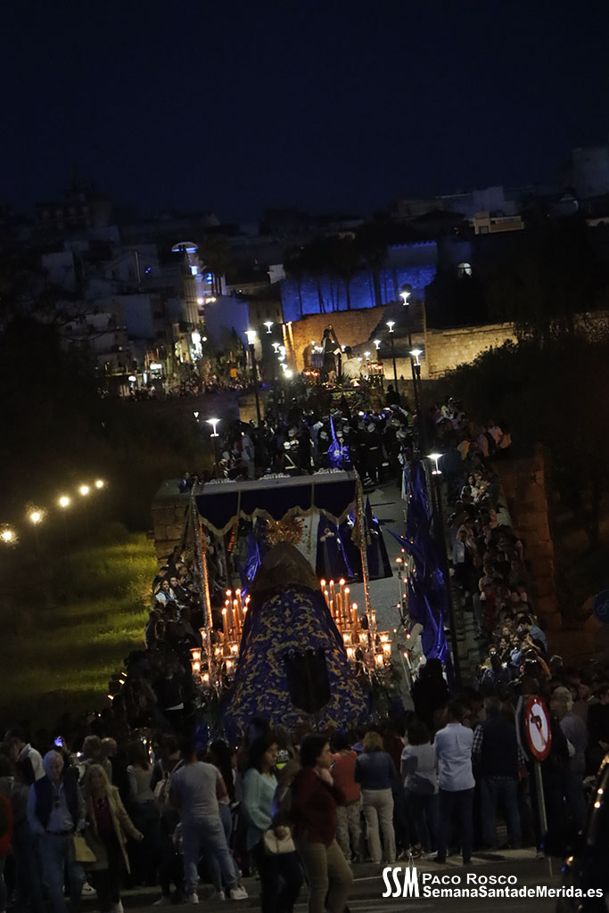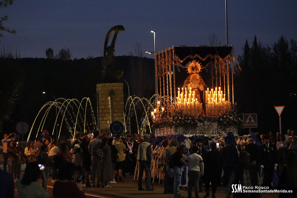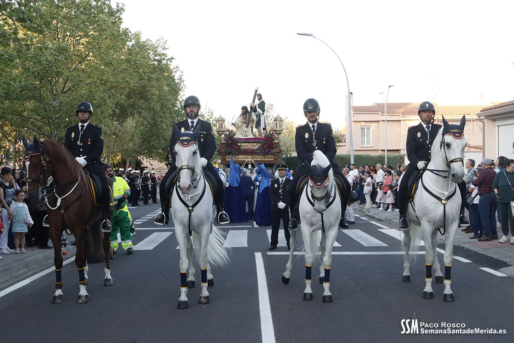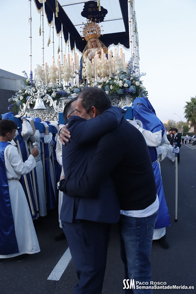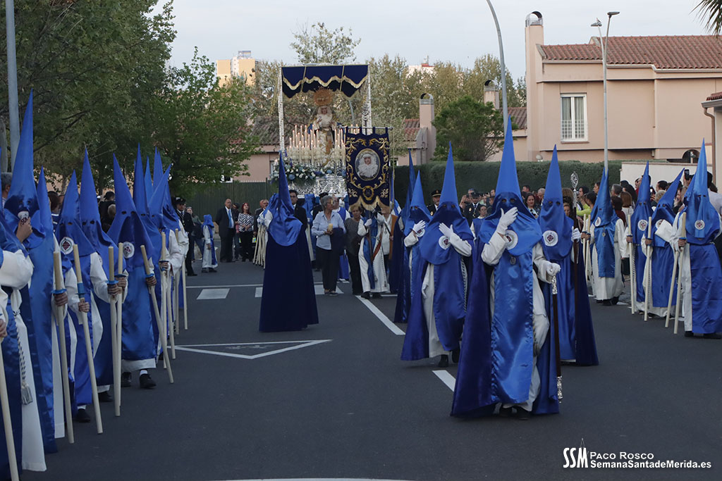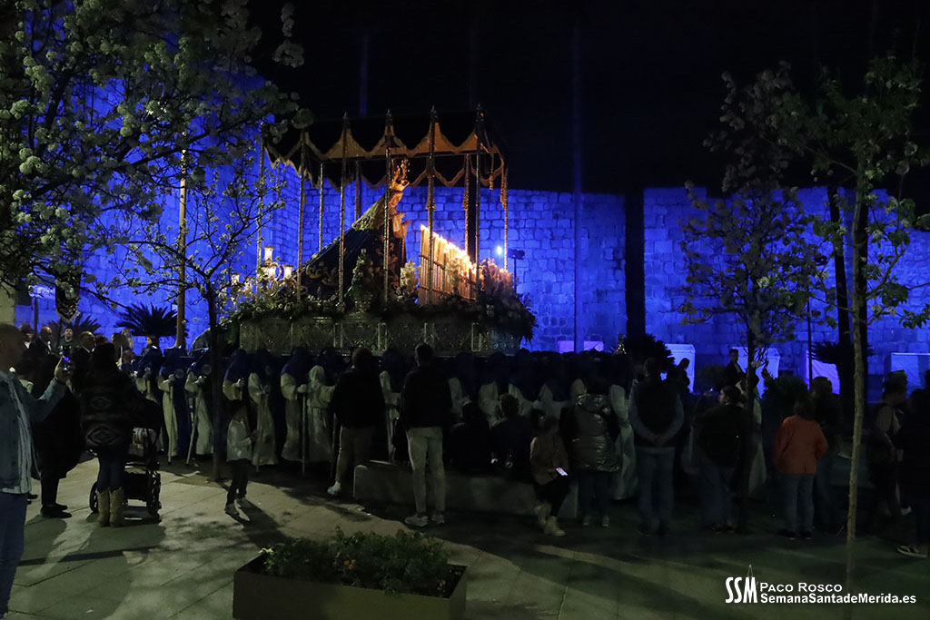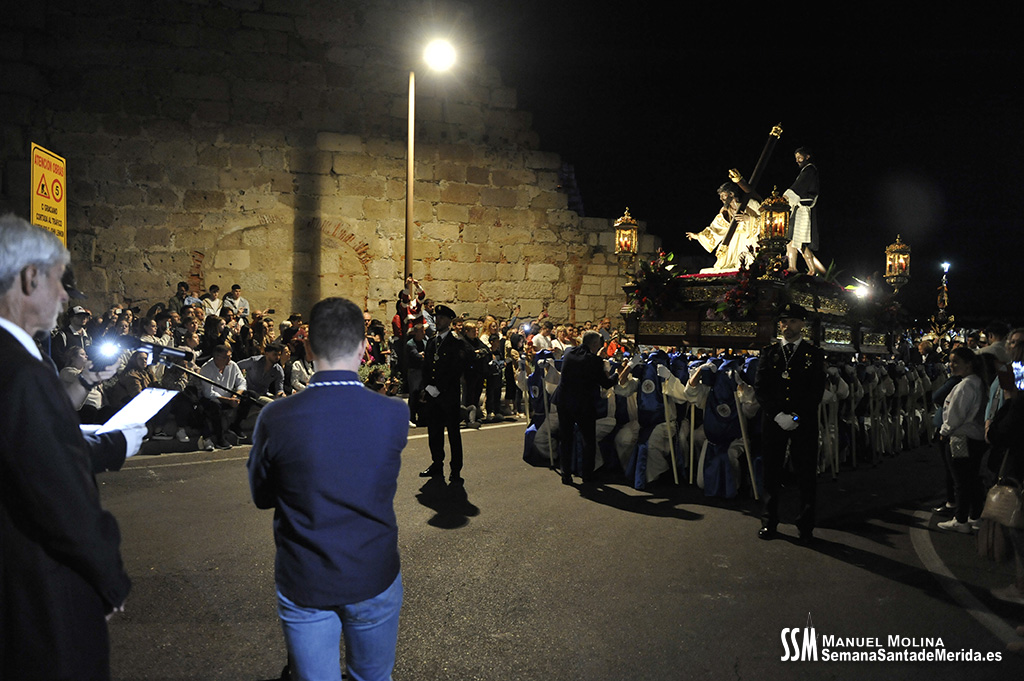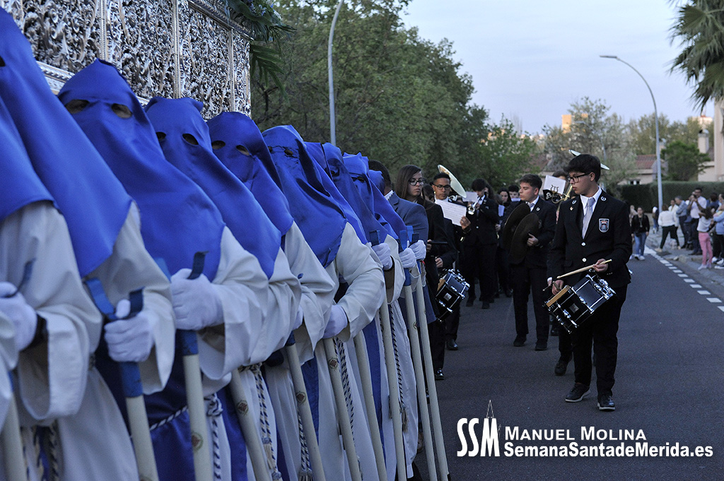 El tempo cambia por completo tras la caída de Cristo y, cambiando a allegro cuando, sobre la partitura en la que se convierte la Plaza de Roma, aparecen los matices que, a modo de suave caricia, van dejando las bambalinas de Nuestra Señora de la Misericordia que, hace que la melodía se vaya diluyendo en una explosión final que va dejando una composición perfecta, de aromas y con sabor a despedida, la despedida de un hermano mayor que termina su mandato con los deberes hechos y dejando un impresionante patrimonio.