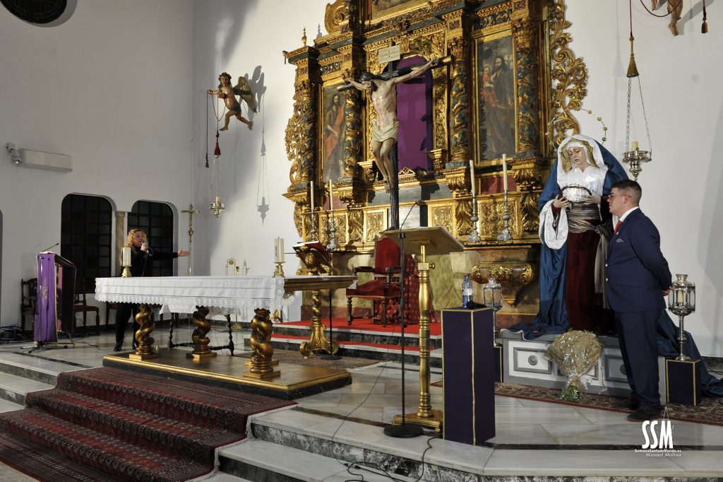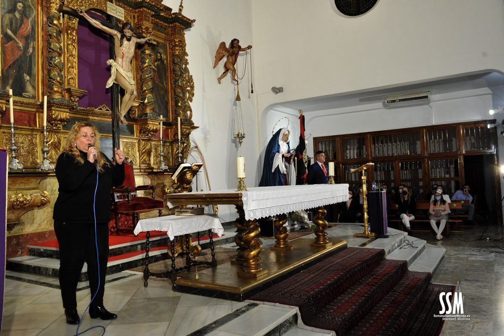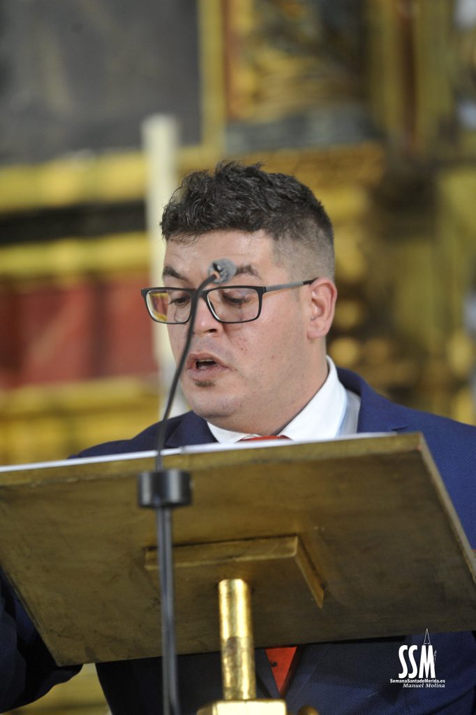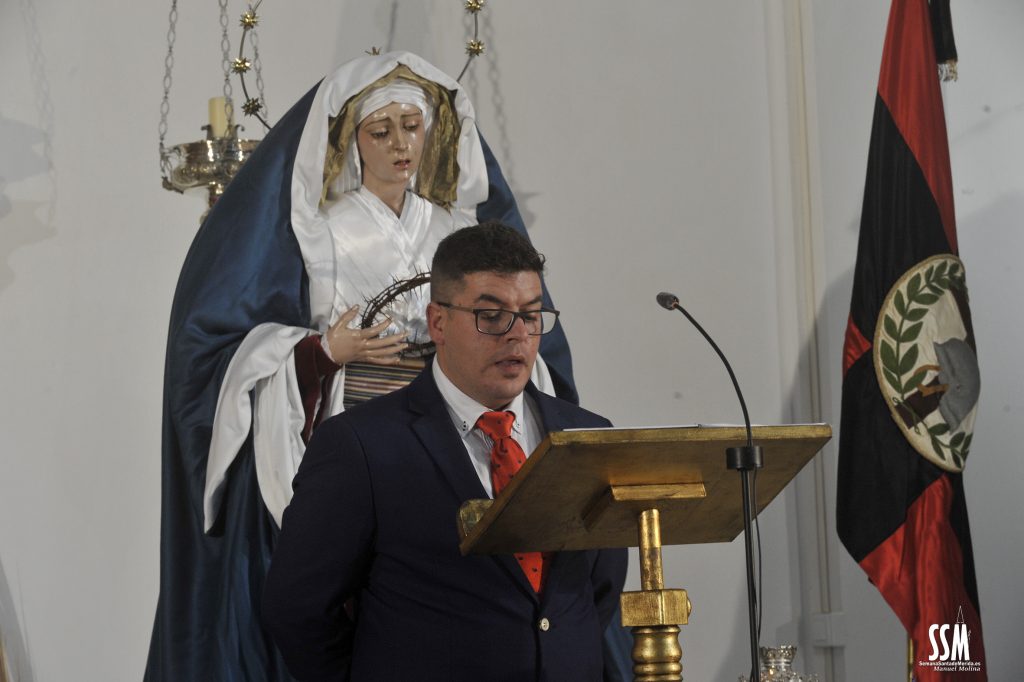La Iglesia de Cristo Rey se convertía, de esta manera, en el faro de la voz de los costaleros con el sentido pregón que David Flores fue desgranando ante la mirada de Nuestra Señora de la Paz.