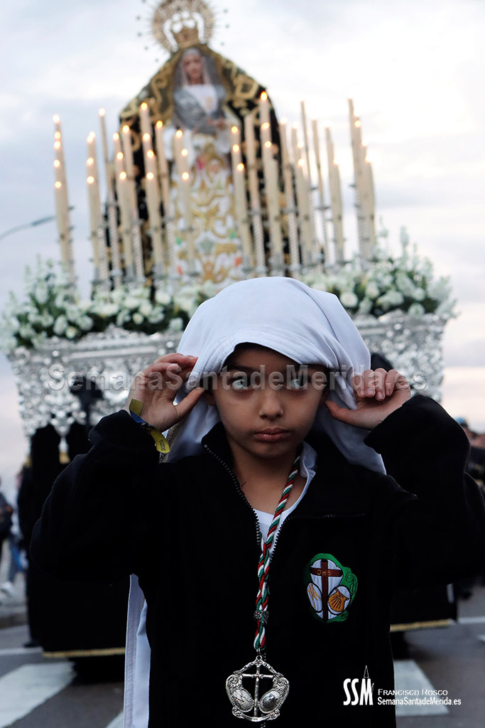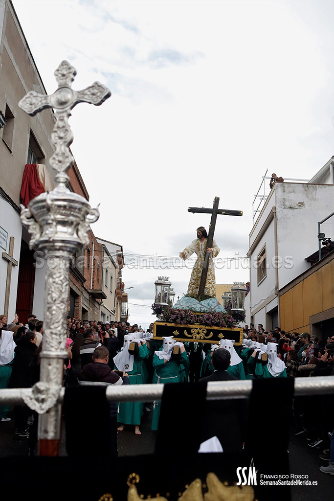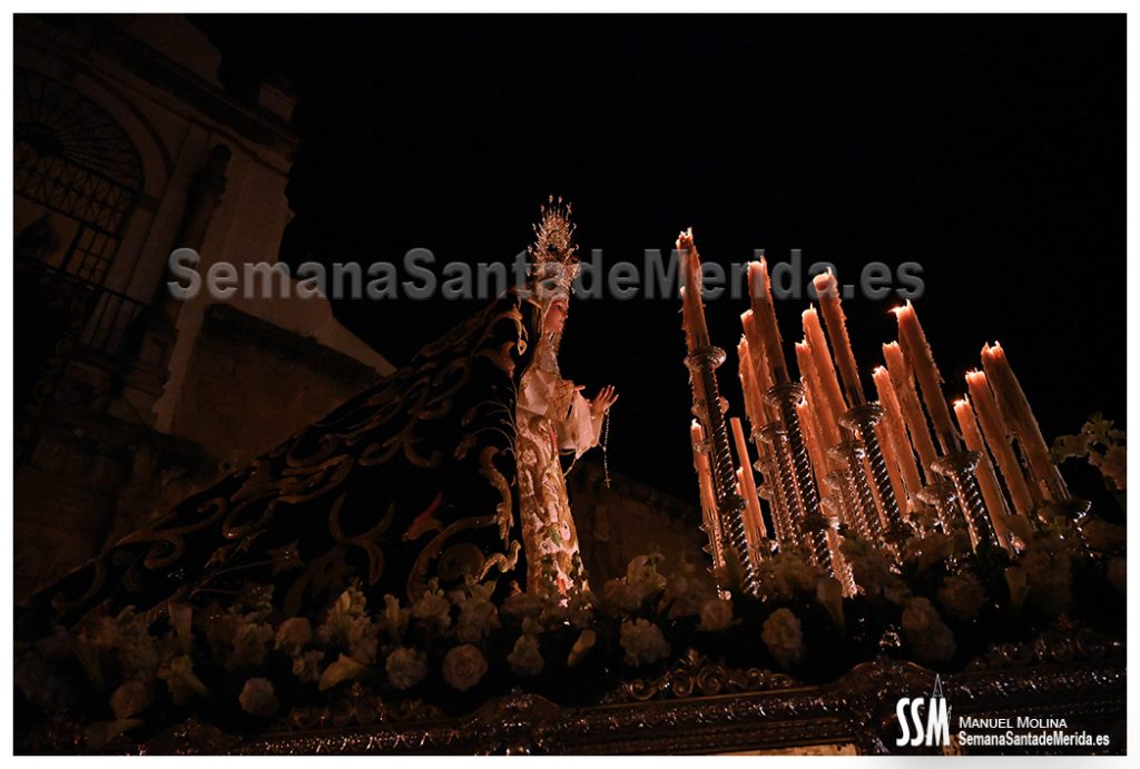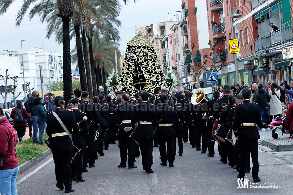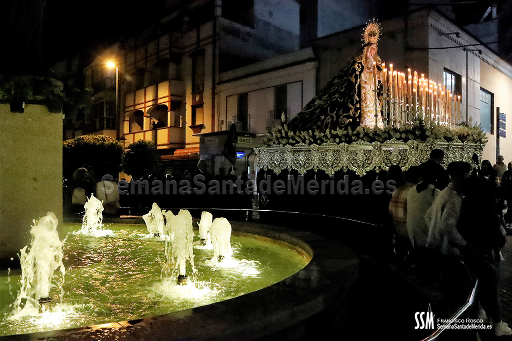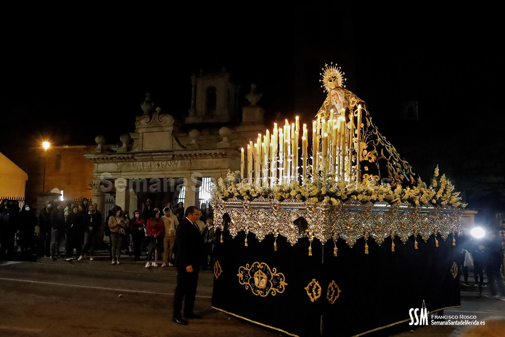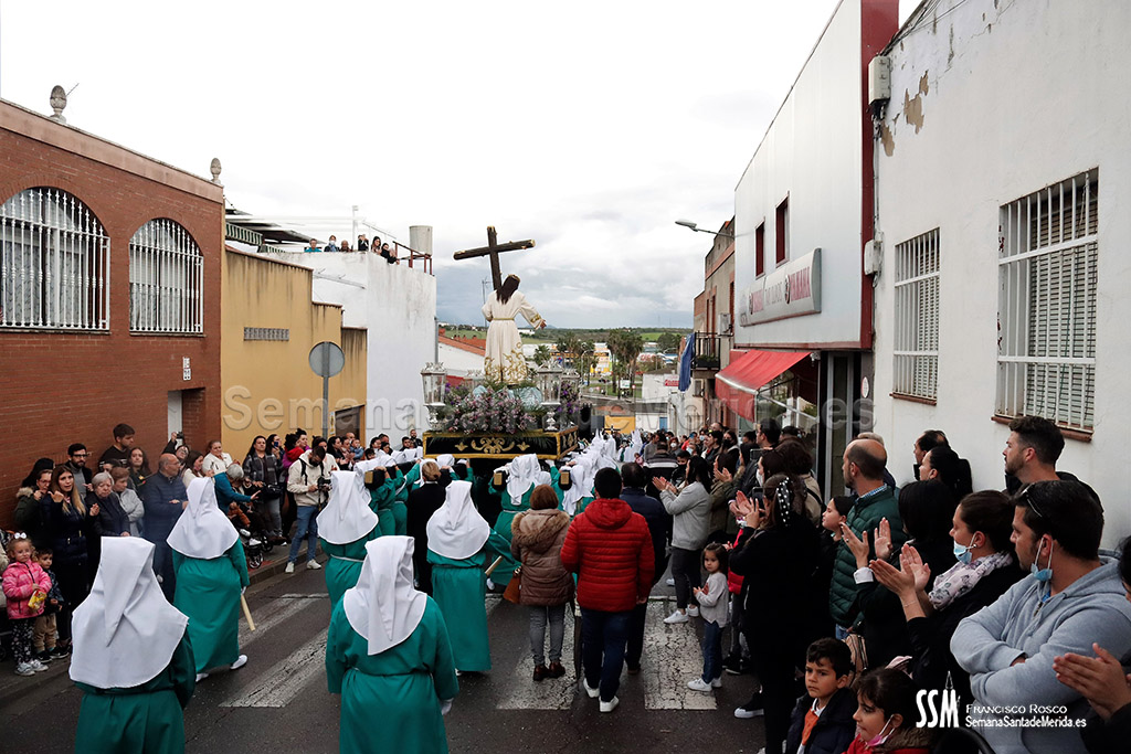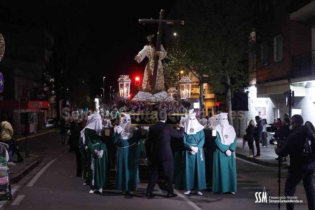 María Santísima de las Lágrimas, por su parte, salía a la calle por primera vez tras su restauración llevada a cabo en el pasado año, y desde atrás se encargaba de velar por todos los allí presentes, acompañada por la Agrupación Musical Nuestra Señora de la Paz de Mérida.