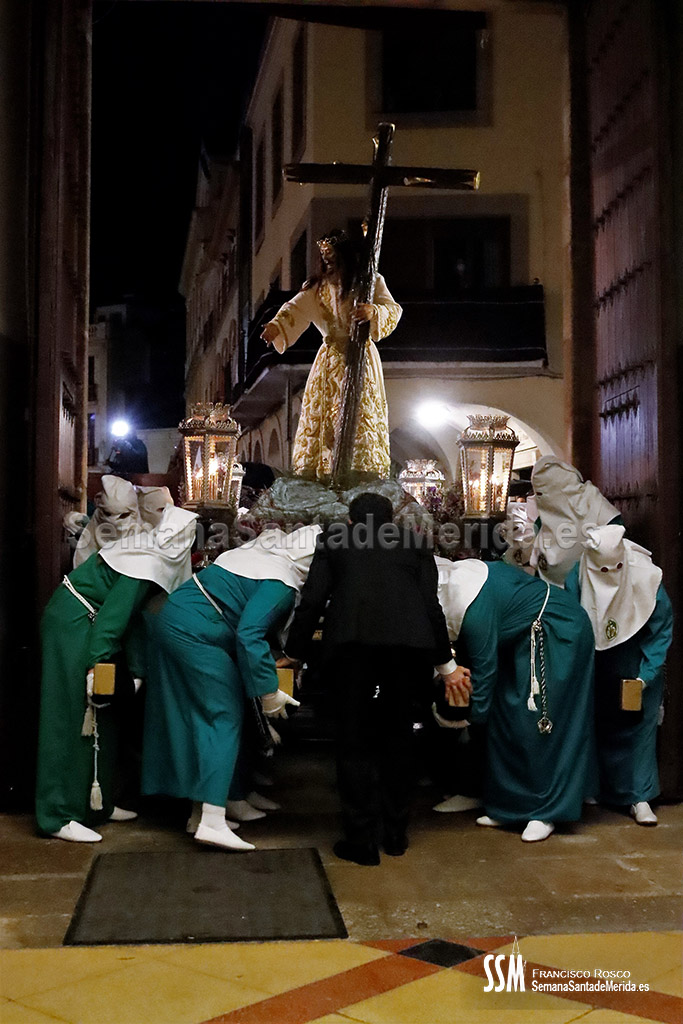 La gran ovación de los allí presentes fue un claro: ¡GRACIAS A TI! Gracias por volver a mostrar a Mérida una cofradía que rebosa humildad y sacrificio y a la que las lágrimas caídas del cielo no pudieron parar. Por eso, antes de recogerse, una voz entre la gente exclamaba: “¡Estamos aquí con vosotros!”. Y como para no estar, después de todo lo pasado.