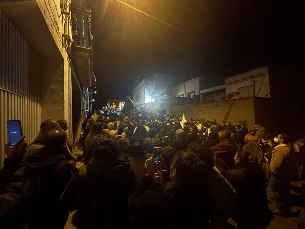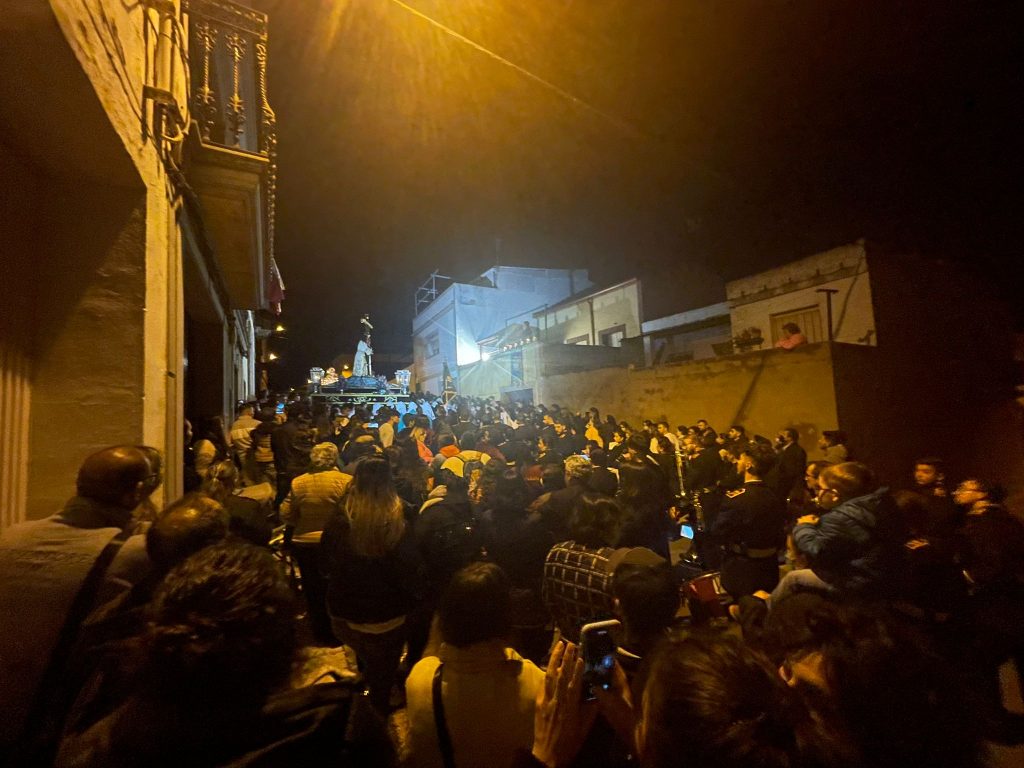 Pero esto no podía terminar así. Cerca de las 20:00 horas, cuando la lluvia cesó, la cruz de guía tomó la calle y, ahora sí, el barrio de San Juan volvió a ver y a sentir con su cofradía. Jesús de la Humildad volvió a ver su barrio entregado, acompañado por la Agrupación Musical Santísimo Cristo de la Merced de Almendralejo.