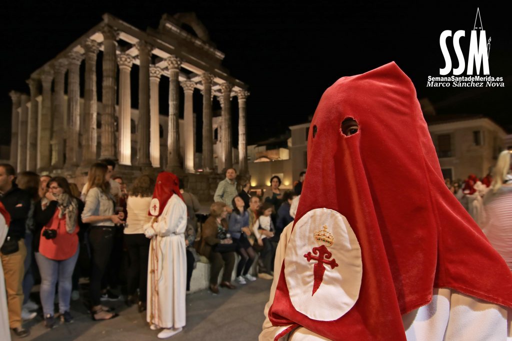Esta puede ser una crónica de una procesión que con los años se ha convertido en uno de los momentos claves de nuestra Semana Santa. Pero hay momentos que pocos ven, que se producen en el interior de la concatedral que simbolizan el sentido de la Semana Santa de Mérida. Vivir con los más pequeños la pasión por sus titulares, el rezo anterior a la salida procesional, el trabajo de decenas de jóvenes que se comprometen con su Cofradía y que son capaces de poner en la calle una estación de penitencia seria y sentida. Un Lunes Santo que sobrecoge y que contiene los elementos claves por los que la Semana Santa de Mérida es de interés, de interés religioso y de interés turístico.