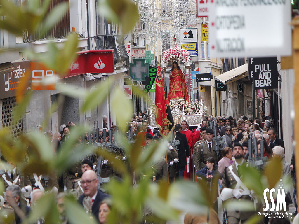 La Agrupación Musical Nuestra Señora de la Paz comienza su recorrido hasta la Basílica mientras los coros y danzas de Nuestra Señora de la Antigua se preparan en la puerta de la Concatedral para recibir a Eulalia, en su día grande, a los sones de ‘Olalla blanca en lo blanco». Y se van cumpliendo las tradiciones, el piquete de Artillería comienza a marcar el ritmo marcial que pronto cogerá el Paso de Santa Eulalia que, en su caminar, va robando alguna que otra lágrima.