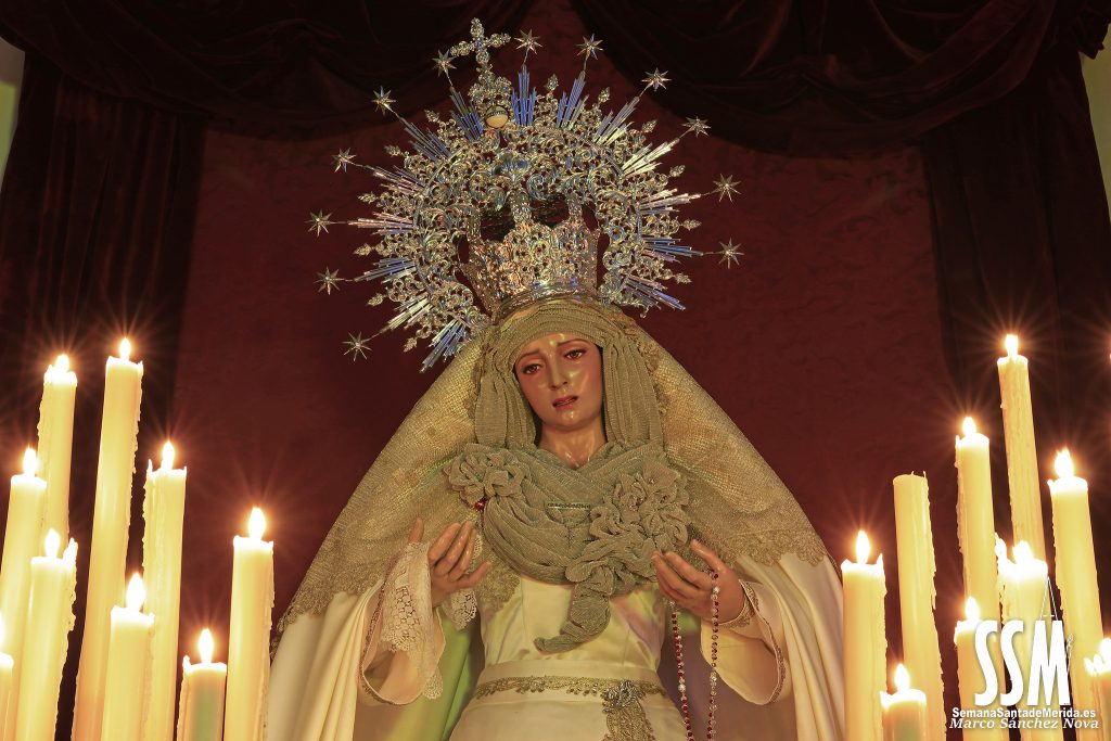 Así se presenta esta hermandad un año más, con sus puertas abiertas de par en par para compartir su pasión con todas y todos los emeritenses. Junto a la calle, entre curiosos y fieles, aguardan sus titulares. Un regalo para los sentidos de quien se encuentra de sopetón una escena única e irrepetible.