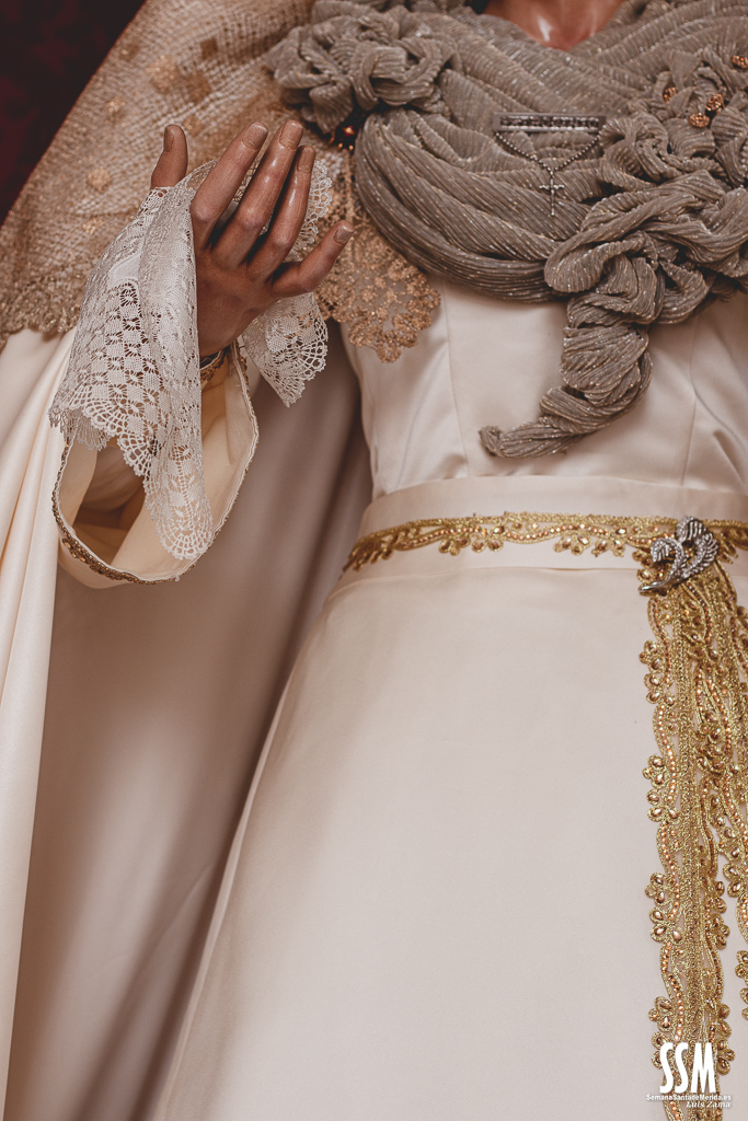 Pero tras la reflexión nos queda la alegría. La alegría de cada Domingo de Ramos. Y aparece este año como una visión. Y es que sin centrarte en los detalles algo ha cambiado en este paso. Jesús, da un aire al Príncipe Suba Sadiq Abbasi de Pakistán. Los nuevos mantolines de las imágenes del paso de la Burrita fueron donados por un hermano de la Cofradía que estando de viaje en 2019 por tierra Pakistan vio un traje regional de la  ciudad y entendió que eran los mantolines que enriquecerían al grupo escultórico al que tanta devoción conserva.