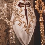 Unos borlones presiden la bambalina frontal. Están quietos, hieráticos, pero no sé porqué fuerza intangible los ves moverse, bailar al son de sus varales. Del ritmo que marcan los rosarios en cada uno de los varales del palio.