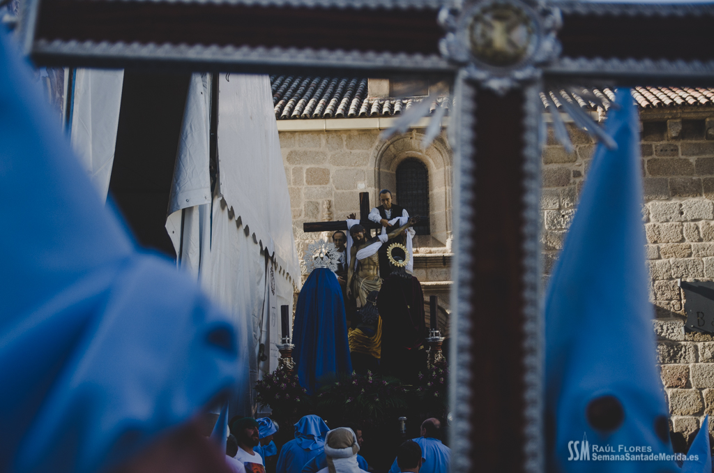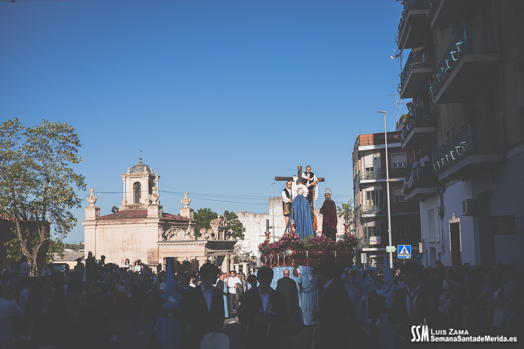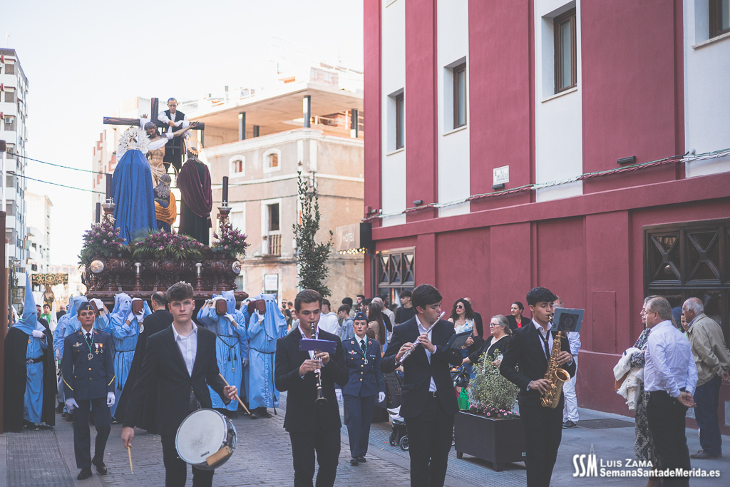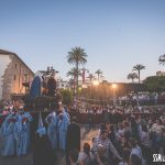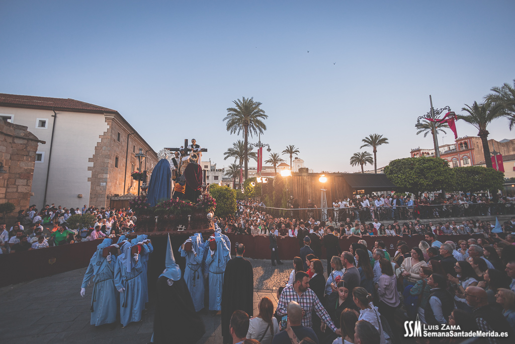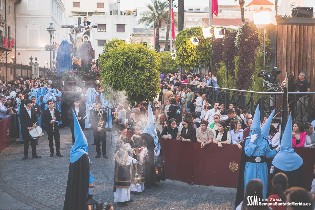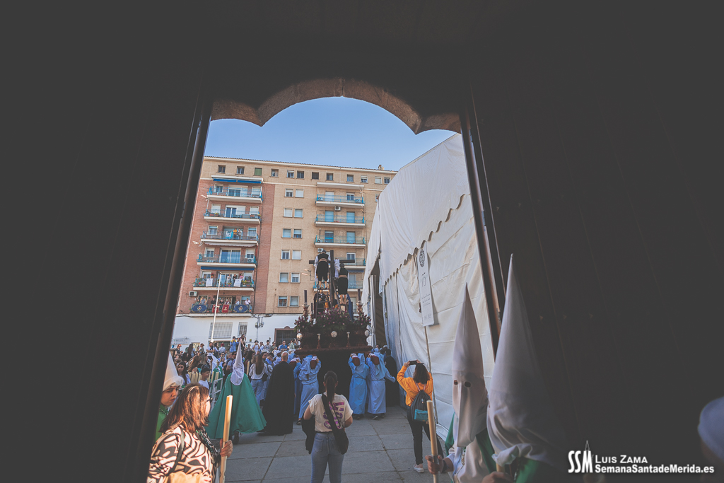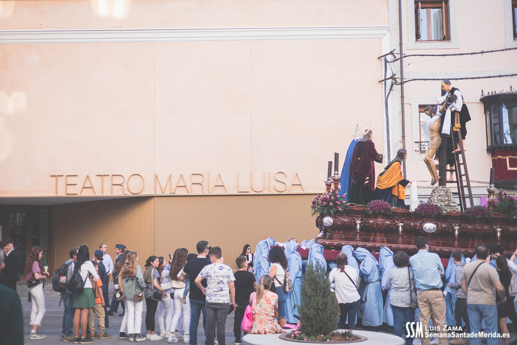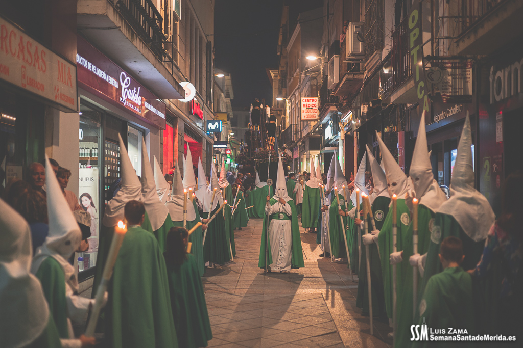 Sus costaleros la llevan en volandas, como si fuese levitando en el aire, ella los cubre con su manto y los protege, como una madre protege a su hijo. Todo fruto del trabajo y esfuerzo de sus costaleros y capataces, horas de ensayo y de falta de sueño para poder realizar el buen trabajo, mañana otra vez la sacaran a la calle, pero será como si no la hubiesen paseado el día anterior por las calles de la vieja Emérita Augusta.