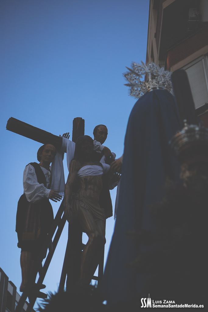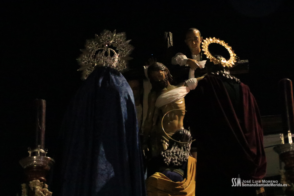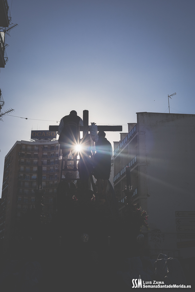 Los ferroviarios no pierden la Esperanza, y lo han conseguido, preciosa salida a hombro y digno de haberlo visto encarar la Avenida de Extremadura, buscando la Plaza de España, y este año ha ido custodiado por faroles, añorando a los primeros faroles ferroviarios que iluminaban el caminar de la cofradía en los primeros tiempos y con música, acompañado del cuarteto musical Sigilum. No necesita más, es un paso muy solemne y así ha procesionado. Ha sido un acierto la capilla musical, silencio Cristo ha muerto y es descendido.