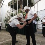 Ha acompañado a los dos pasos en su entrada la Basílica, y no podía ser de otra forma, arropado por todos aquellos emeritenses y foraneos, que se sienten ferroviarios. Pero este acto no ha sido en balde. Los costaleros de Ntra. Sra. de la Esperanza, se lo ha agradecido con un sincero y fuerte aplauso.