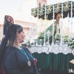 Magnifica con su manto adamascado que estrenó el año pasado, se le nota como un aire más sevillano. Es igual, los ferroviarios llevan en el corazón a su madre de la Esperanza vaya como vaya, pues el sentimiento cofrade les hace ver todo en azul, negro, verde y blanco. Pero además, este año ha estrenado traje a juego con el manto. Magníficamente vestida por su camarista.