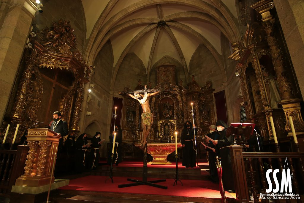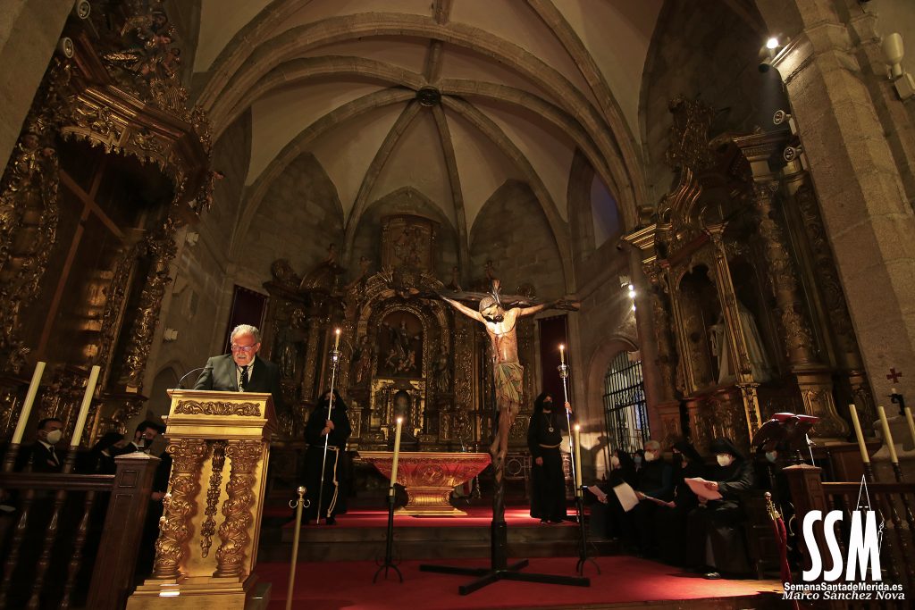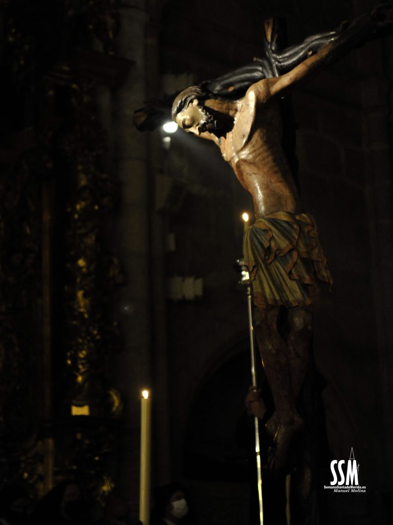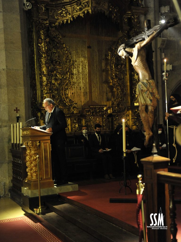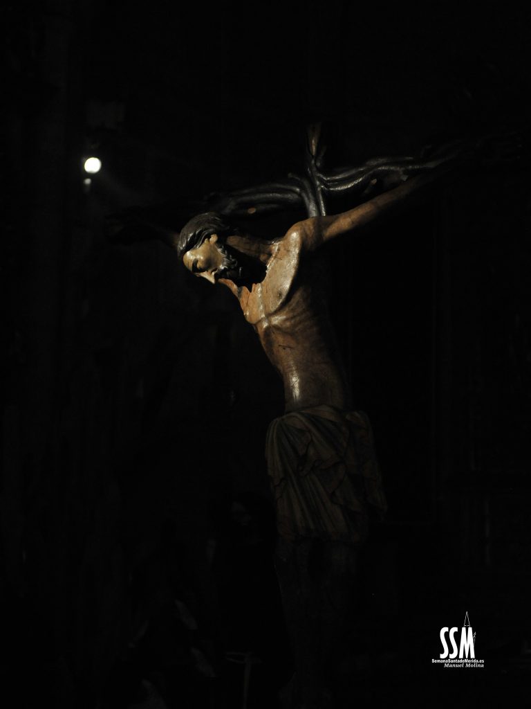 En respetuoso silencio, todos los allí congregados buscan con su mirada los ojos entreabiertos de Cristo, como queriéndole transmitir un deseo de agradecimiento antes de que espire. Todos estamos allí para aliviar su soledad en el momento de su generosa entrega, y para rememorar, junto a su imagen, sus últimos momentos entre nosotros.
