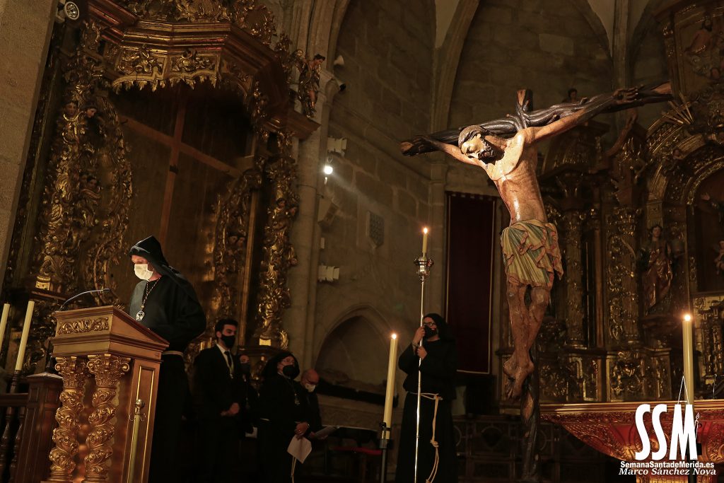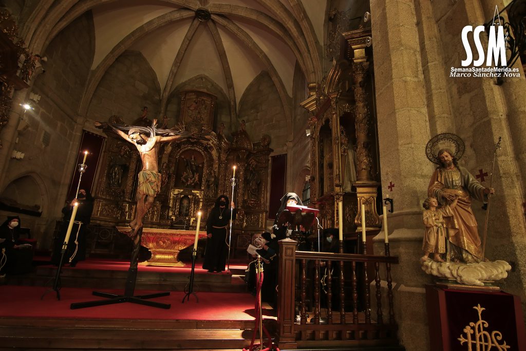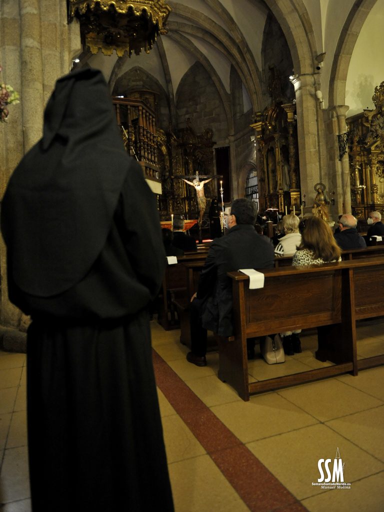 Después de cada estación, los cánticos gregorianos propiciaban nuevos momentos de encuentro, en los que nuestra mirada se dirige hacia la imagen del Santísimo Cristo de la O, para que cada uno de nosotros pudiera hacerle llegar nuestras propias reflexiones. Y Él, con sus brazos extendidos sobre la Cruz, abiertos entre la tierra y el cielo, acogía todas ellas en su corazón, para hacerlas suyas.