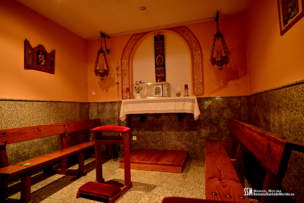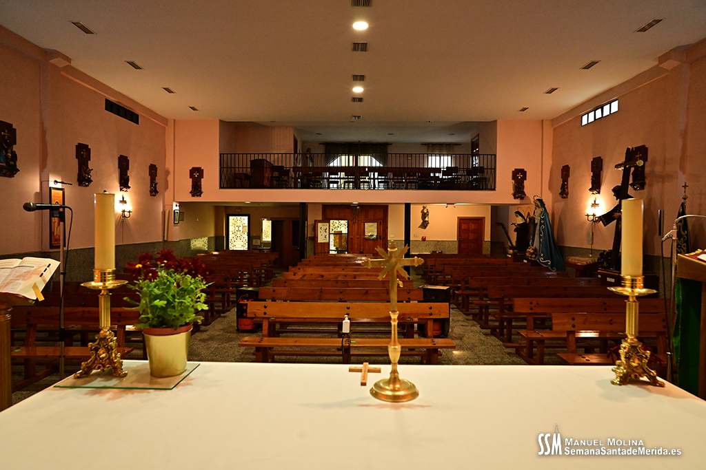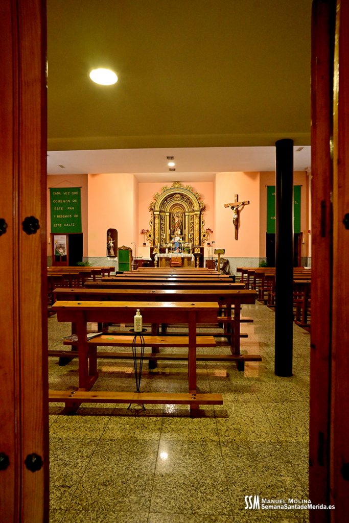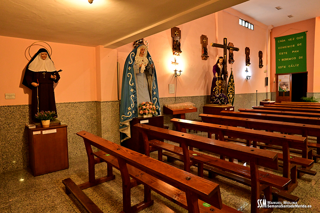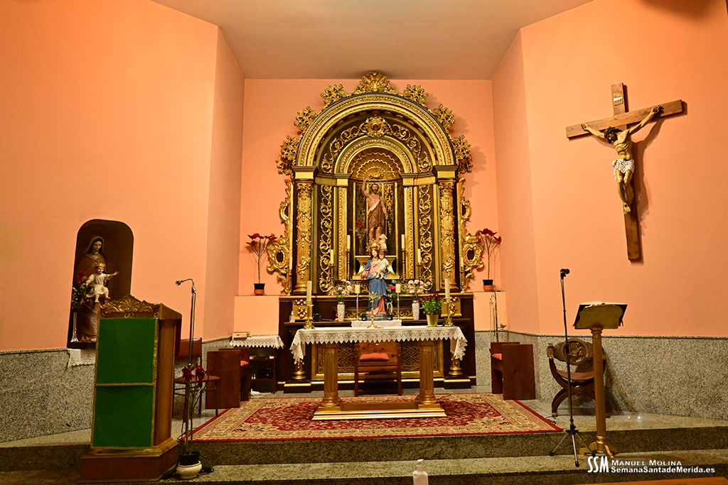 El retablo es moderno y es obra del tallador Martínez, que era vecino de la ciudad de Zafra. En el año 1990, entre otros grupos parroquiales se convierte como sede canónica de la Hermandad de las Lágrimas y llega la Imagen de María Santísima de las Lágrimas.