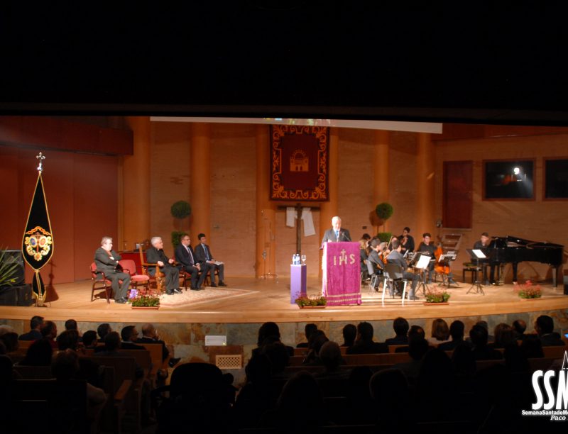 Un pregón entrañable lleno de sentimiento y emoción. Pablo Burgos Guillén, fundador de la Hermandad y Cofradía de la Sagrada Cena y Ntra. Sra. del Patrocinio emocionó al público presente hablando de su larga trayectoria de más de 60 años