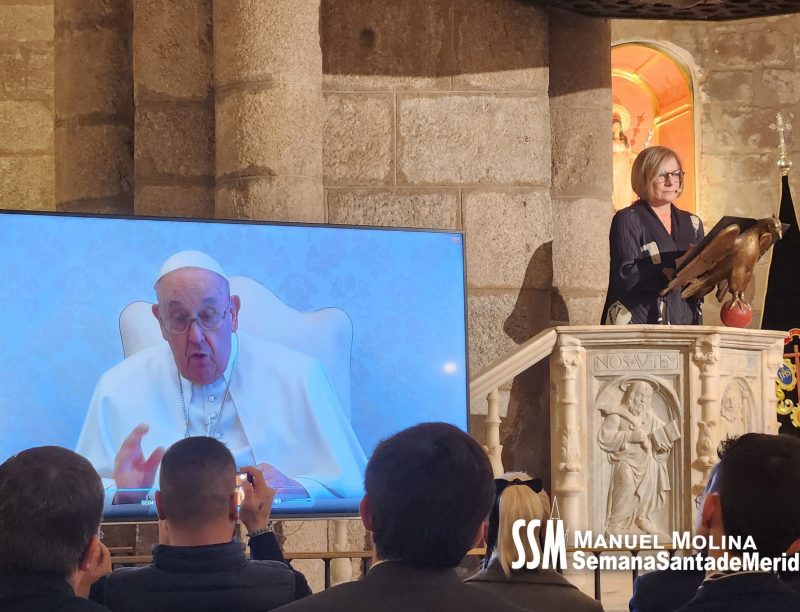 El Papa Francisco participa en el Pregón de la Semana Santa de Mérida que ha ofrecido Eva Fernández
