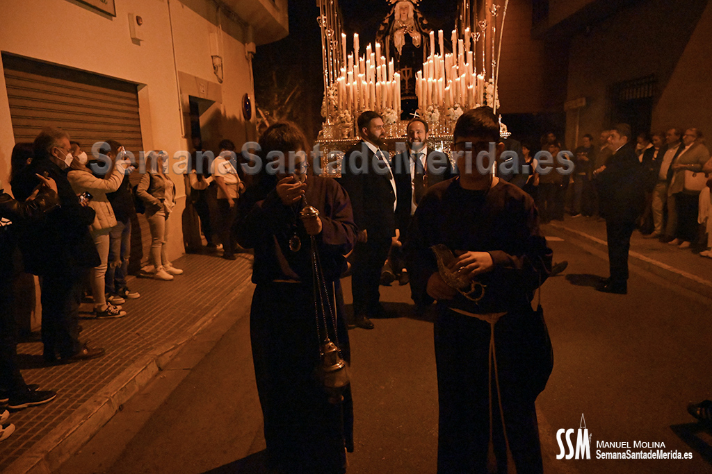 No son muchos los fieles que la acompañan desde el centro hasta su barrio, bendito barrio que es anunciado por la voz del capataz, solo unas “chicotás” después: ya está en su barrio. Es en ese momento en el que, a través de los respiraderos se vuelven a distinguir esas caras de siempre, esa esencia del barrio. Llega uno de los momentos más íntimos de la hermandad.