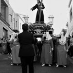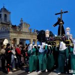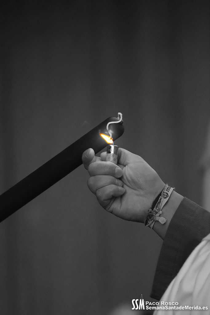 El cortejo de nazarenos está formado, se suman la” Banda de Cornetas y Tambores Jesús Nazareno” de Sevilla y la “Agrupación Musical Nuestra Señora de la Paz” de Mérida y se dirigen, rápidos, a la casa de Hermandad, al encuentro de los Titulares. En el interior de la misma, los custodian cuarenta mujeres, a Jesús de la Humildad, y veintiocho hombres a la Virgen, pero no están solos, les esperan muchos fieles que se agolpan en las aceras. Ellos no tendrán la suerte de tener a sus imágenes cerca, por unas horas, pero quieren despedirse, quieren volver a pedirles por aquellos que no pueden estar en esos momentos, y lo hacen en silencio y con lágrimas en los ojos, rezando, pidiendo salud o dando gracias por lo que sólo ellos y su Cristo y su Virgen saben.