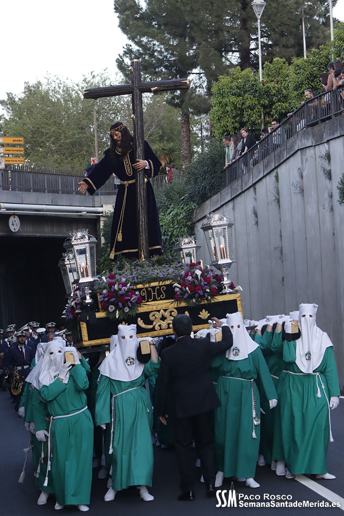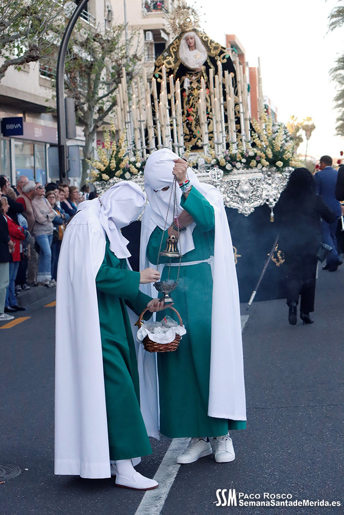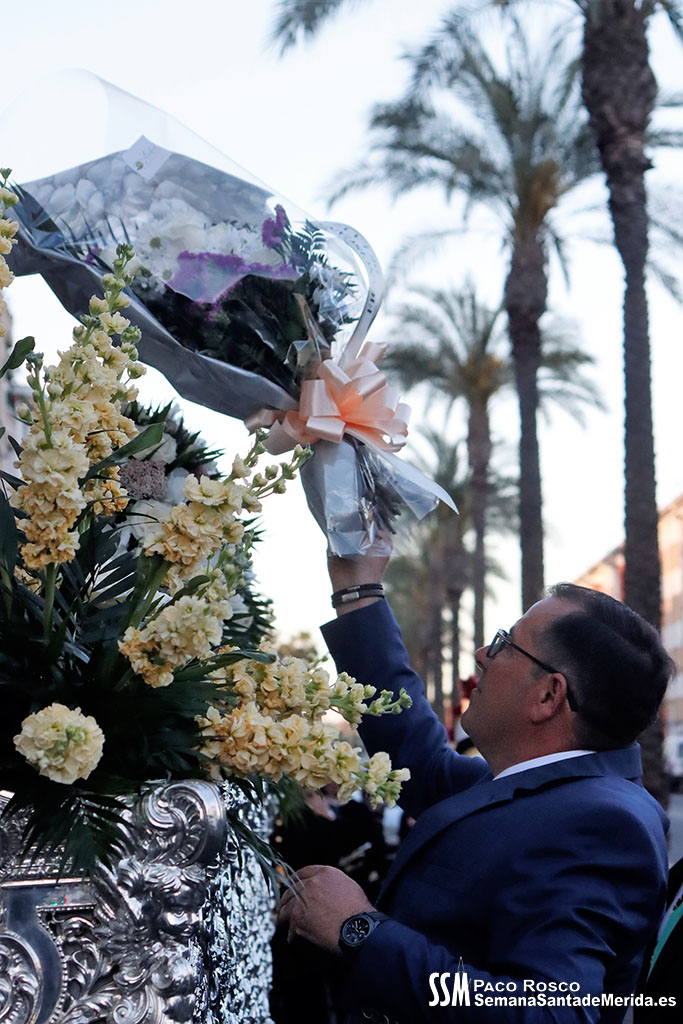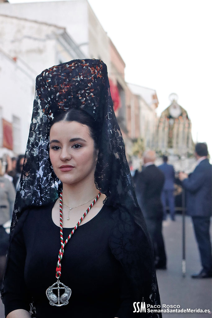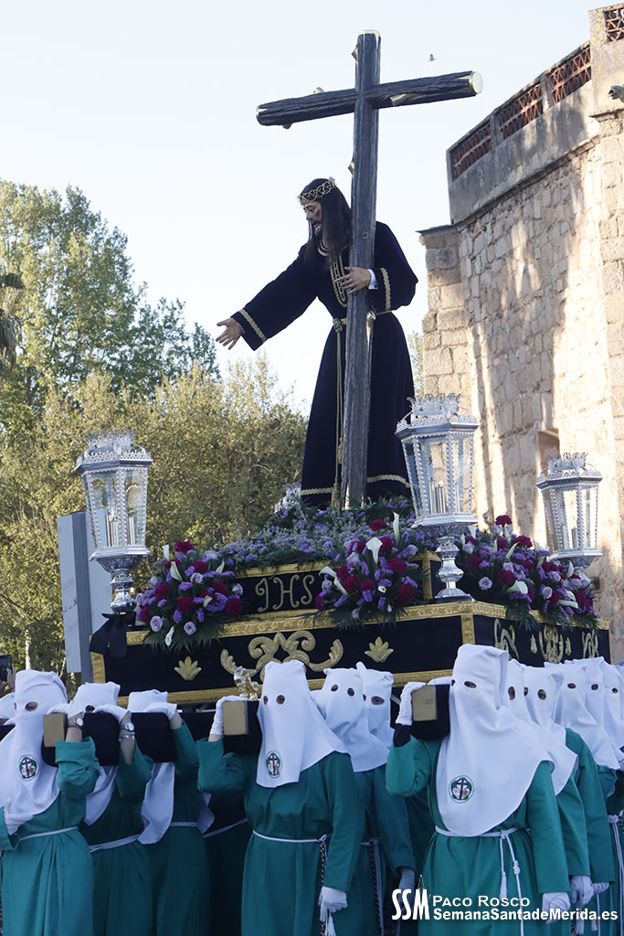 Una Hermandad que se encamina a la carrera oficial, pero que antes tiene una cita con la patrona de Mérida, con Santa Eulalia, a la que visitan en su Basílica, antes de disponerse a entrar en carrera oficial, y lo hacen con el orgullo, con la ilusión de los más pequeños que continúan con una sonrisa velando por sus titulares y así llegan a la Concatedral.