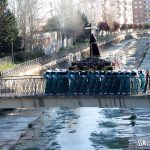 Mientras, aguarda María Santísima de las Lágrimas, a su alrededor, su cuadrilla de costaleros se hace una foto para inmortalizar el momento y los nervios previos se traducen en abrazos, sonrisas y deseos de buena estación de penitencia de sus costaleros entre sí y con sus capataces, Ramón González y Domingo Jiménez.