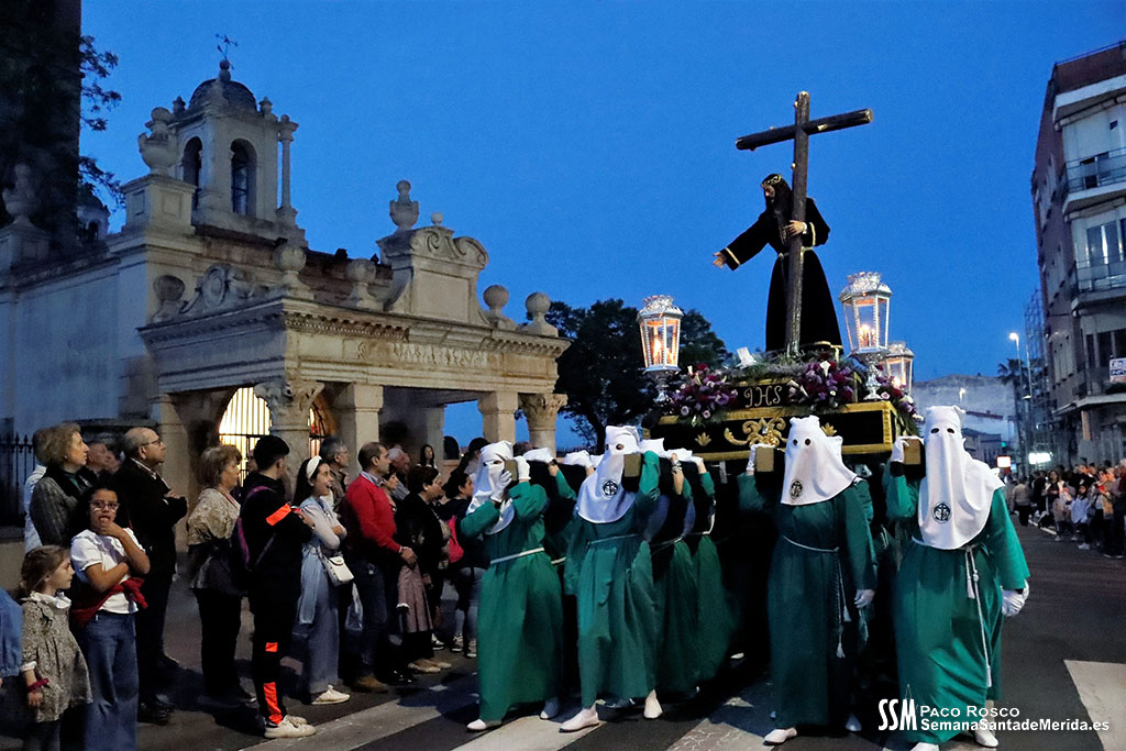 San Juan lo sabe, por fin es Martes Santo. El contador se pone a cero, y a las 19 horas, ya la Cruz de Guía está a escasos centímetros de abandonar la Parroquia de San Juan Bautista y María Auxiliadora para iniciar la estación de penitencia más extensa de la Semana Santa emeritense. Tras esa Cruz de Guía, aguardan nazarenos, mantillas, diputados, pero restarán unos minutos aún, para que esa Cruz de Guía marque el camino hacia la Concatedral de Santa María, a donde peregrina un barrio, humilde y con lágrimas en los ojos, al paso de sus Titulares.