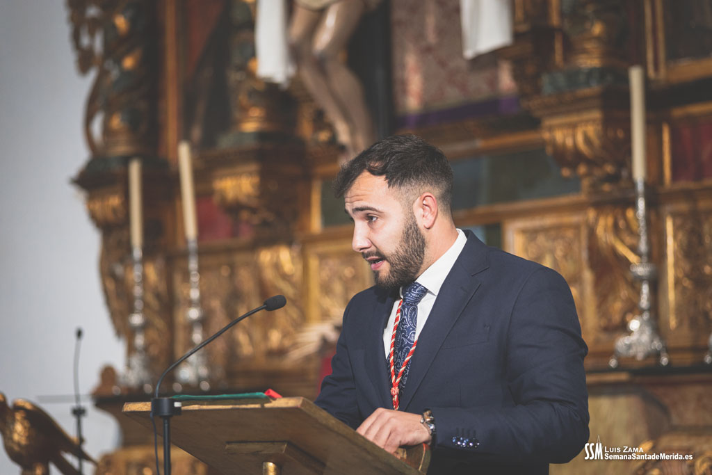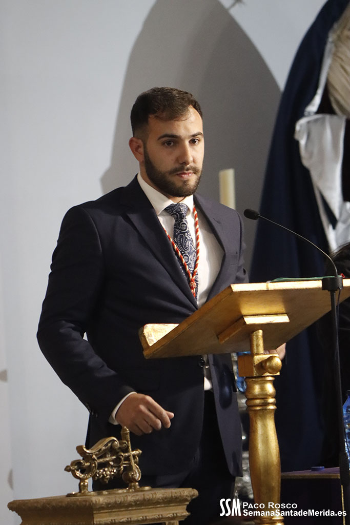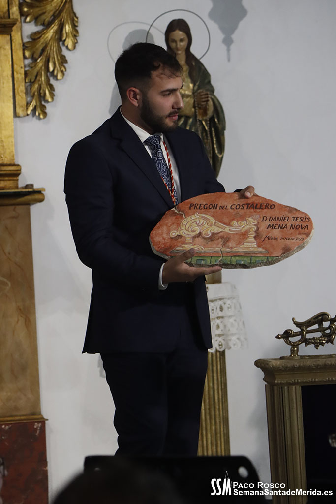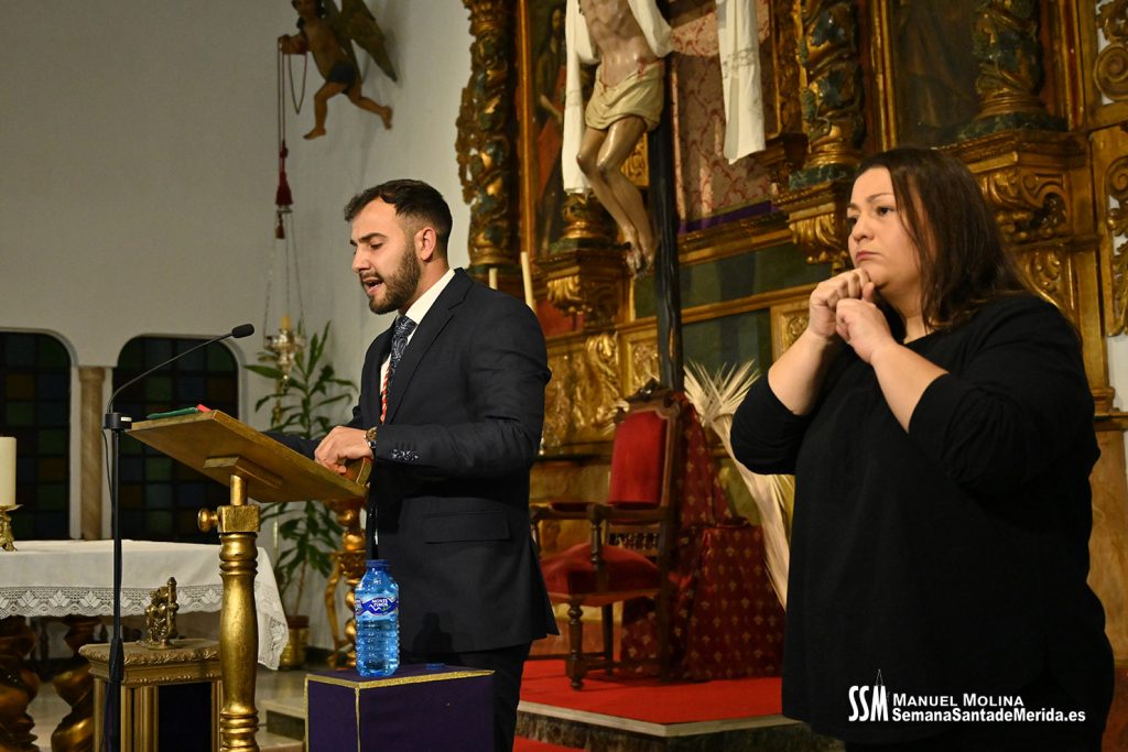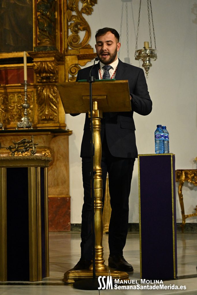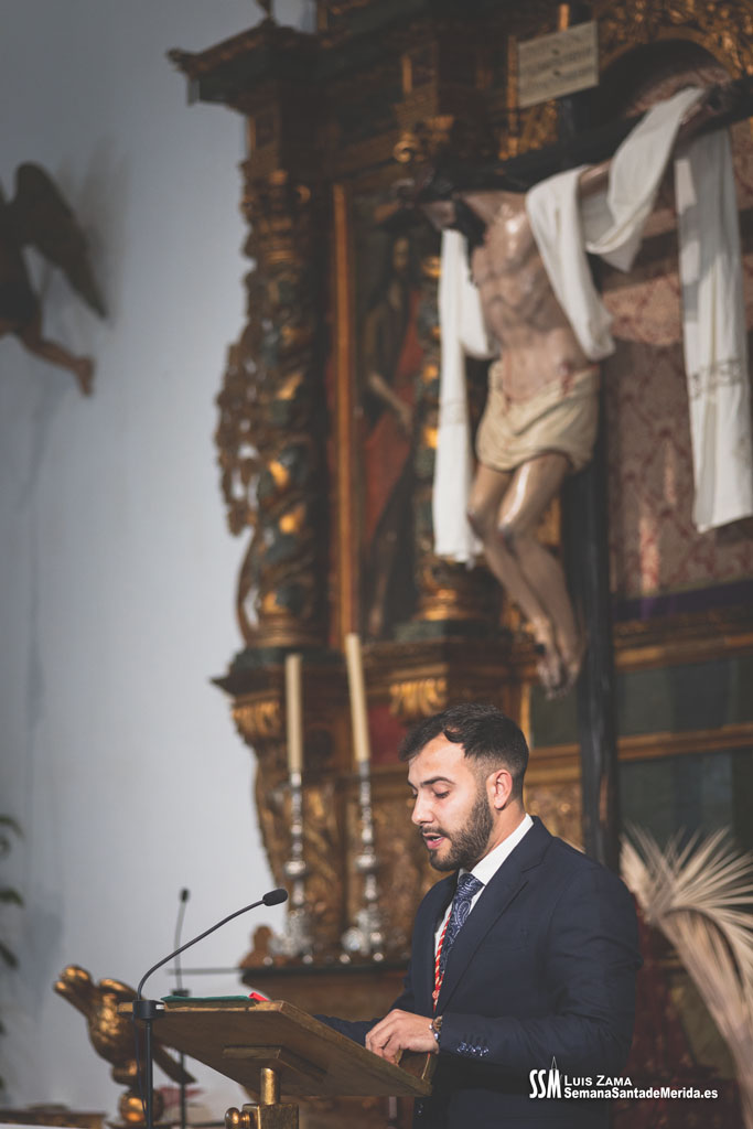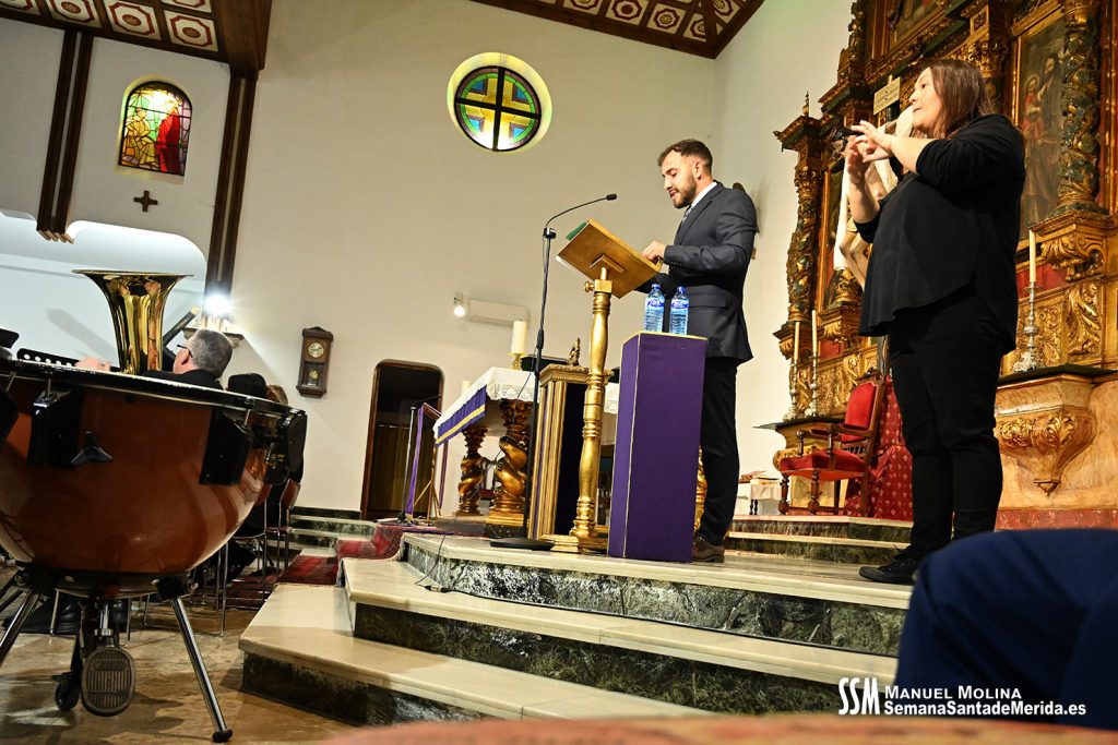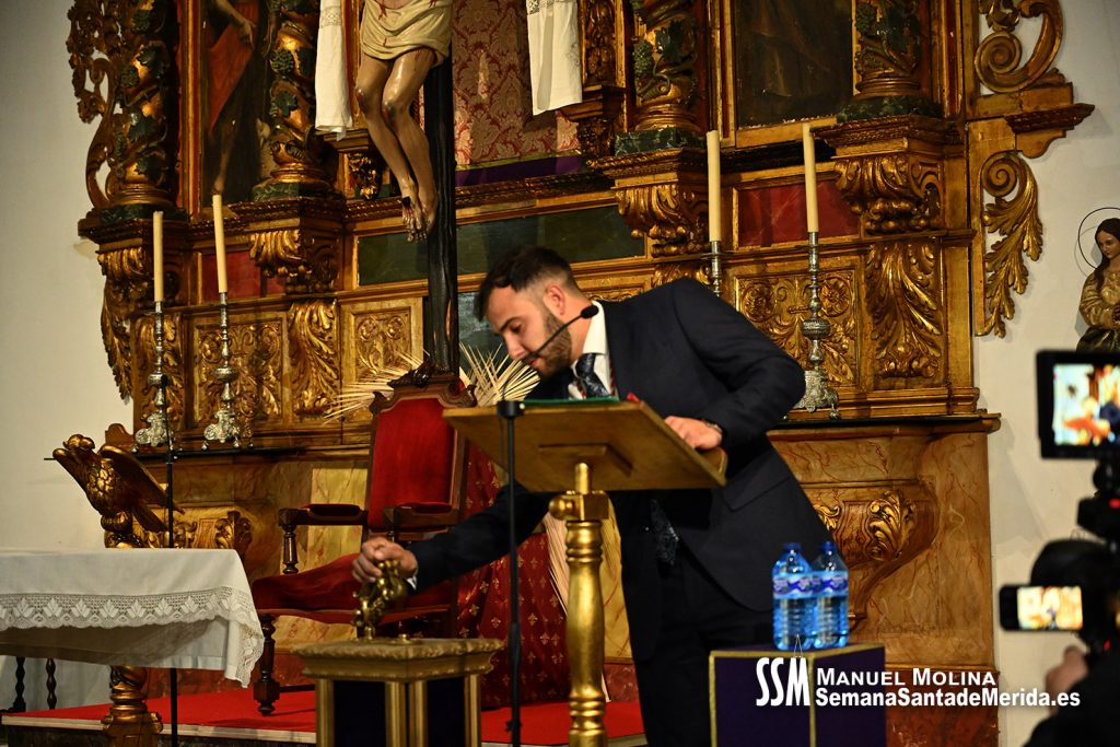 Un largo aplauso agradeció el pregón de Daniel Jesús Mena confirmándose las palabras del diálogo imaginario del presentador con su abuelo Emilio «El niño es costal, Daniel es trabajadera, mi nieto es el martillo de la Semana Santa de Mérida».