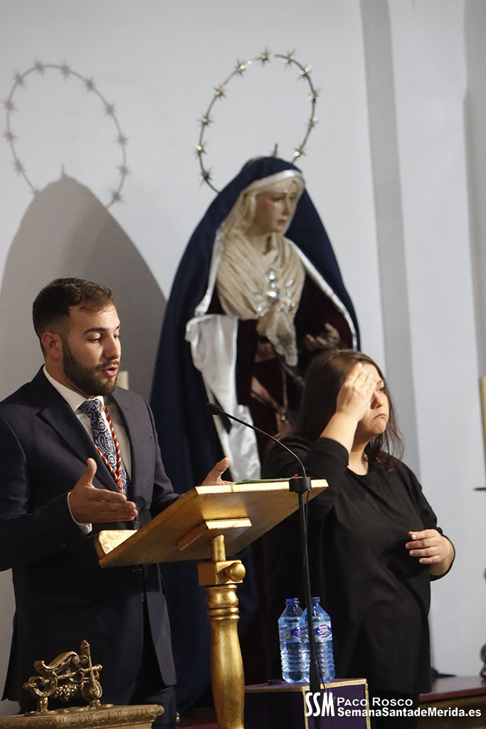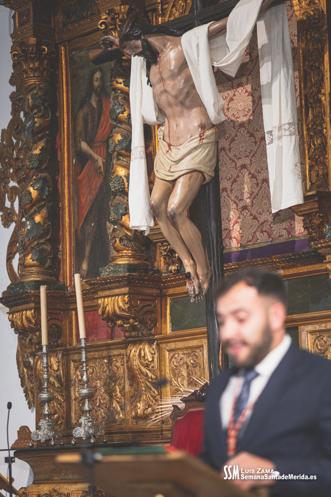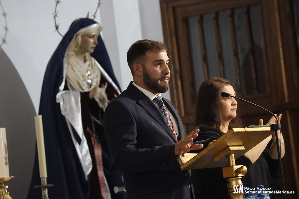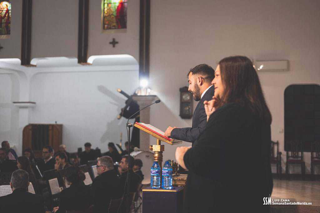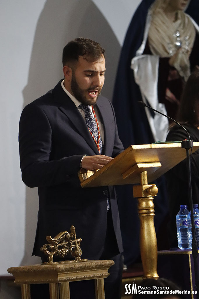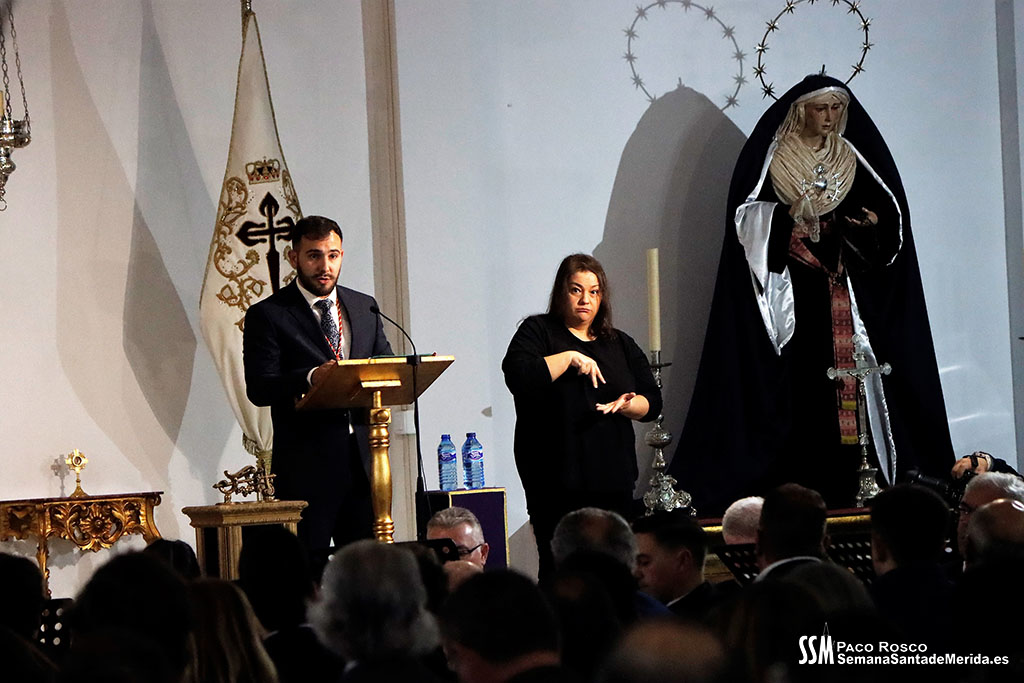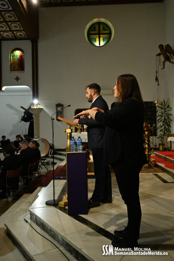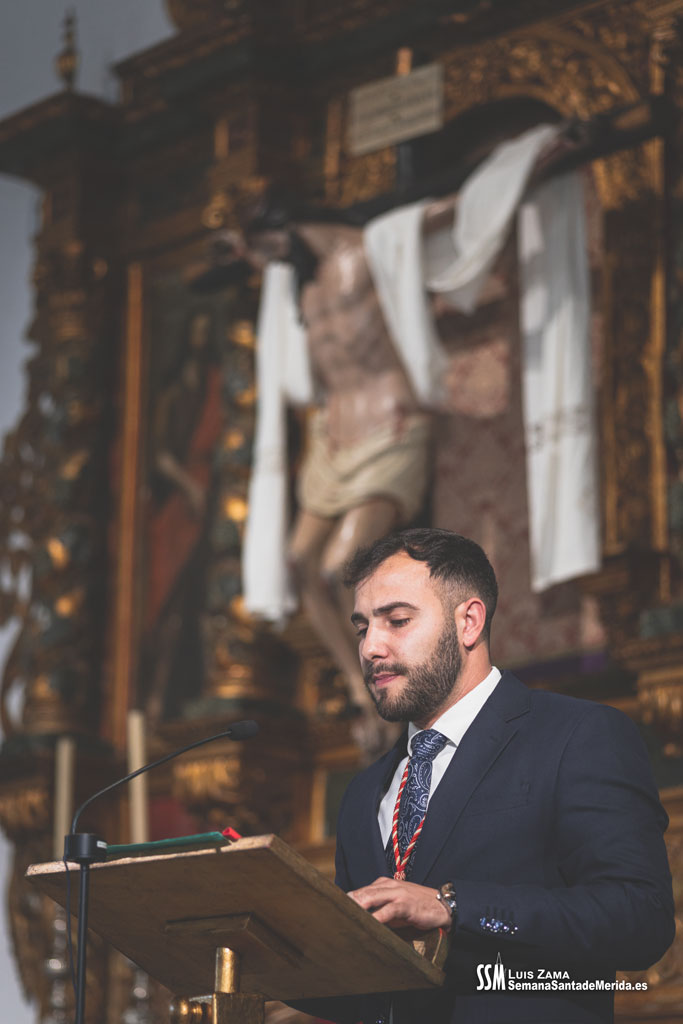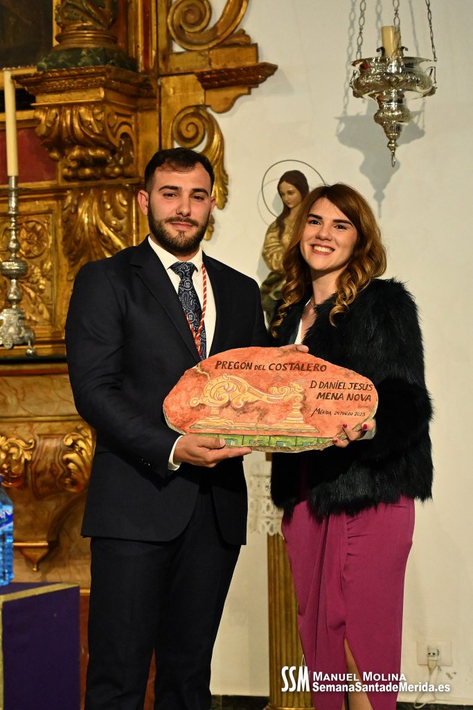 Un largo aplauso agradeció el pregón de Daniel Jesús Mena confirmándose las palabras del diálogo imaginario del presentador con su abuelo Emilio «El niño es costal, Daniel es trabajadera, mi nieto es el martillo de la Semana Santa de Mérida».